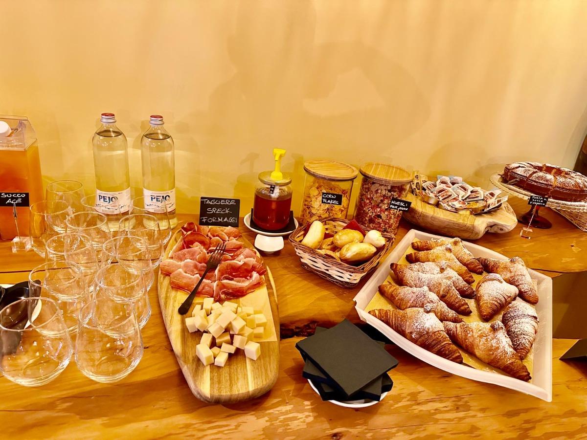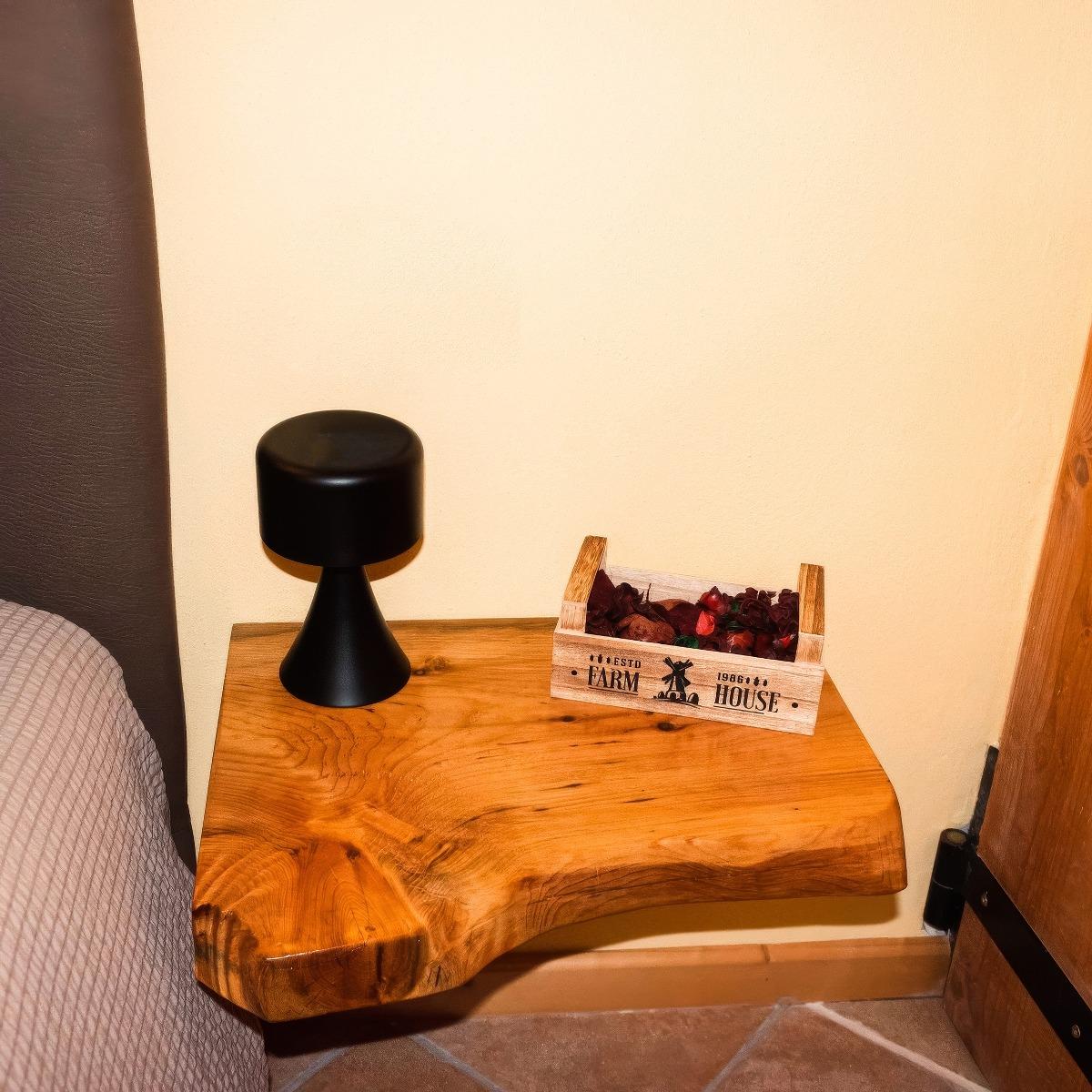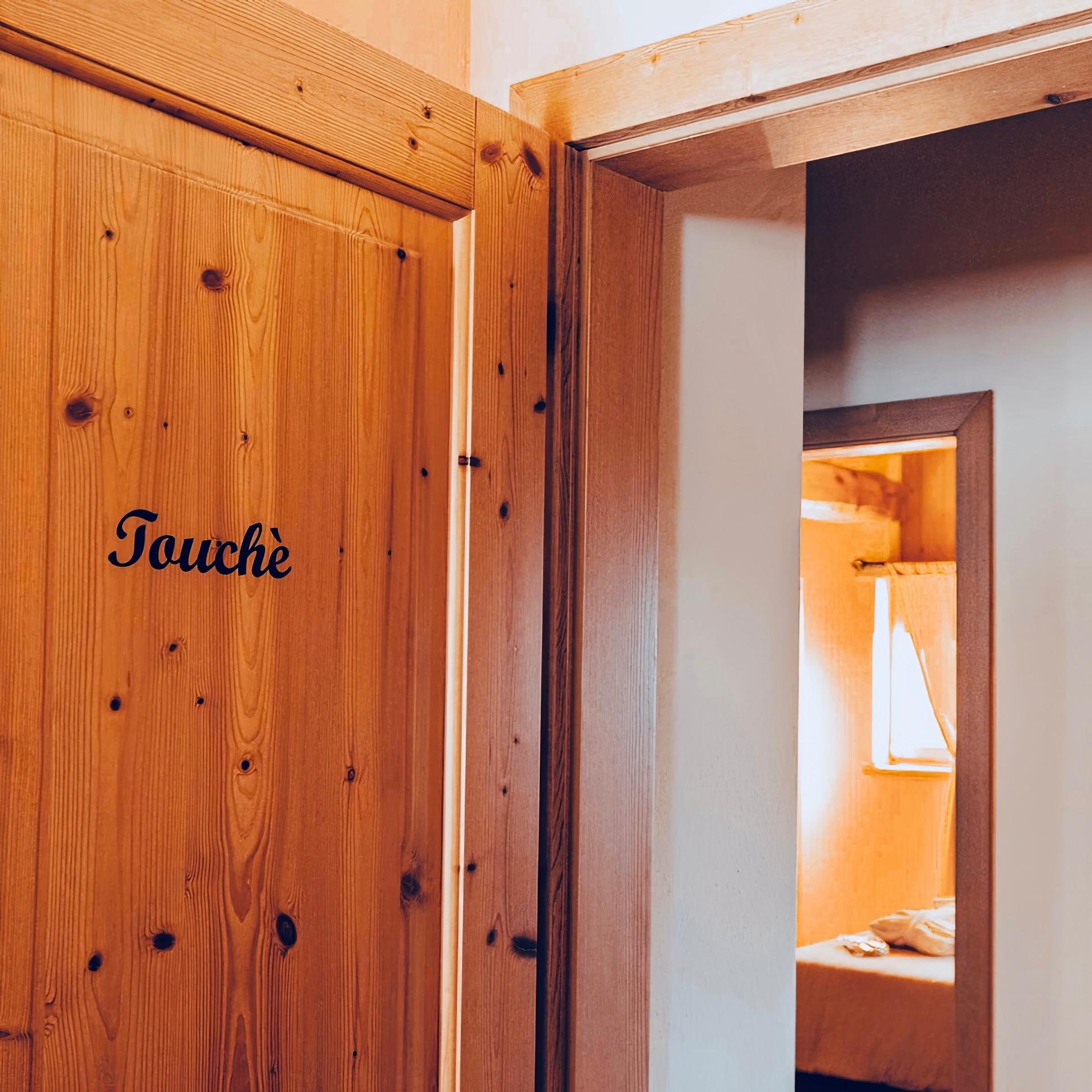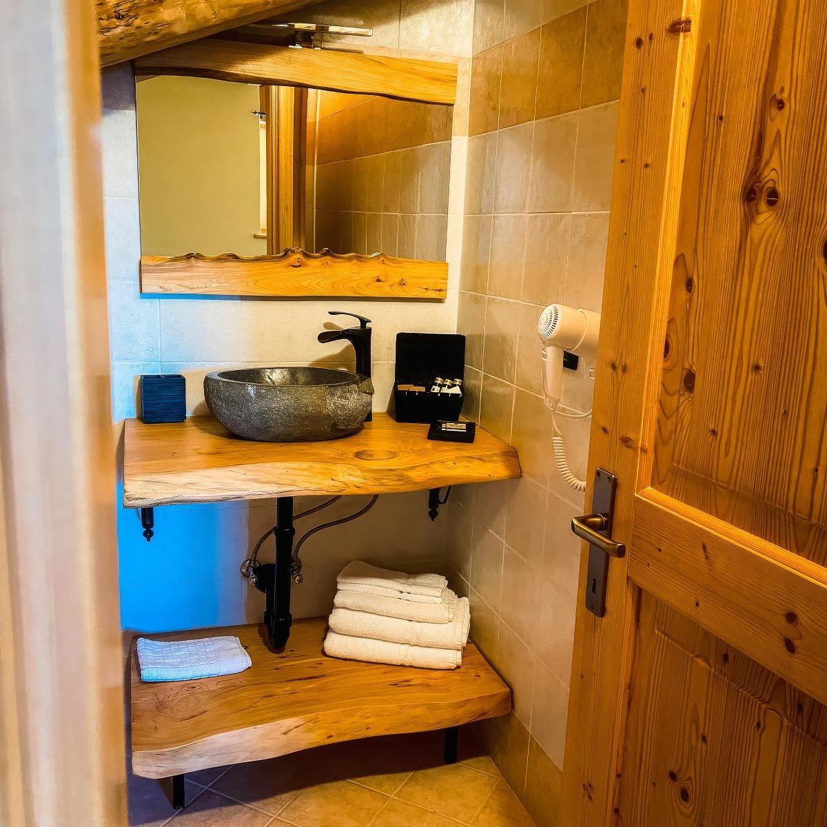 The four rooms, evocatively named Baiser, Caresse, Touché, and Plaisir, are simply and warmly furnished, featuring exposed beams, inviting colors, and artisanal details in wood and stone. All are double rooms and include a small sitting area for intimate dinners, private bathrooms, satellite smart TVs, complimentary Wi-Fi, refrigerators, and memory foam mattresses. Guests are welcomed with a complimentary kit that includes towels, slippers, and wellness center towels.