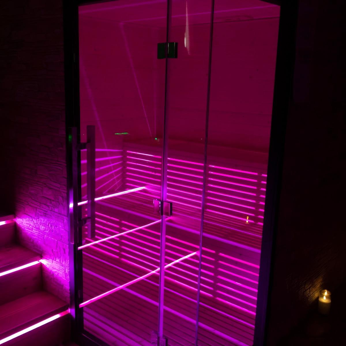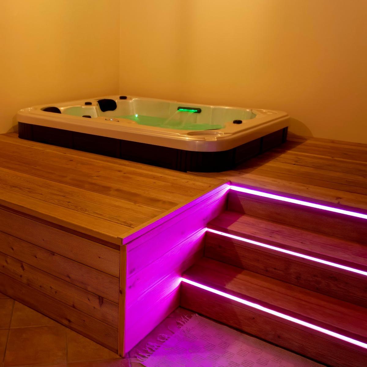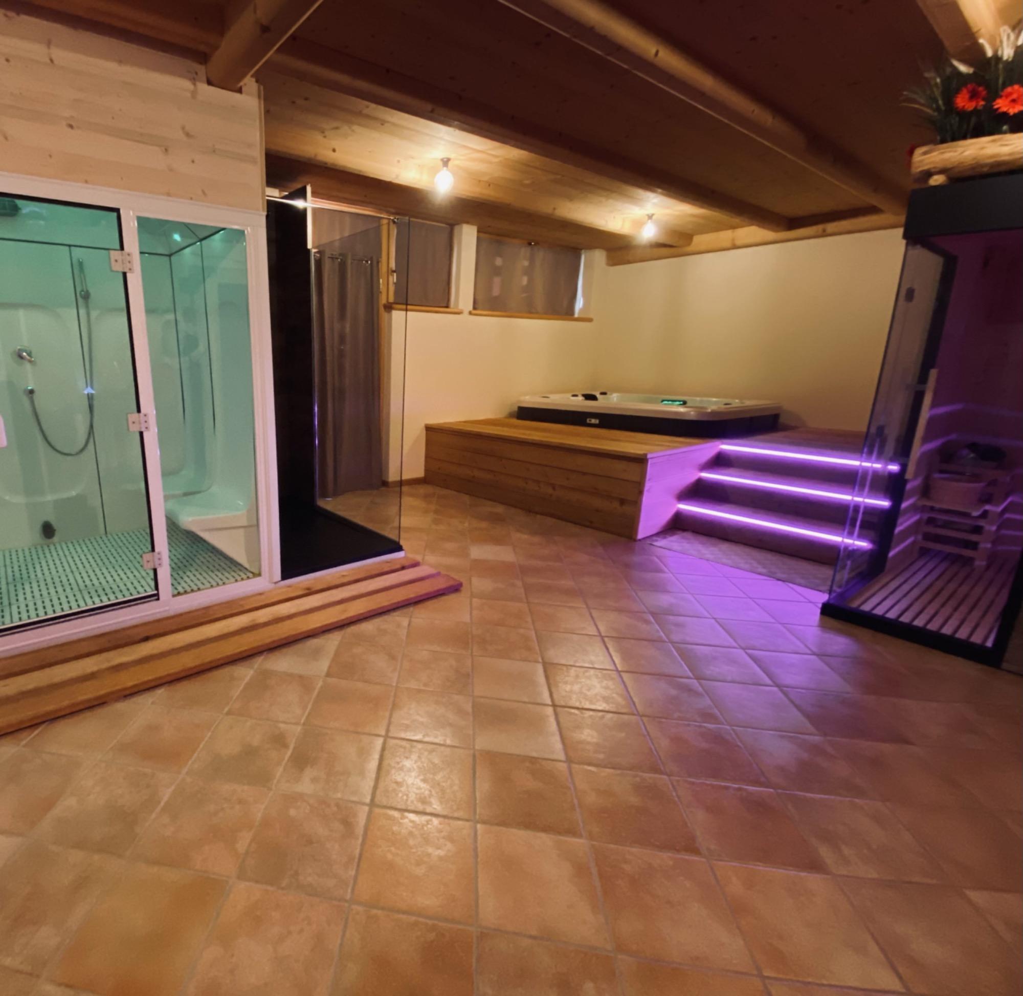 The small wellness center at the Chalet, available by reservation for an additional fee, is a relaxation oasis complete with a hot tub, steam room with chromotherapy, Finnish sauna, a relaxation area with anatomical loungers, and herbal tea selection. The intimate atmosphere is enhanced by soft lighting and an electric fireplace. Personalized massages with qualified professionals can also be booked.