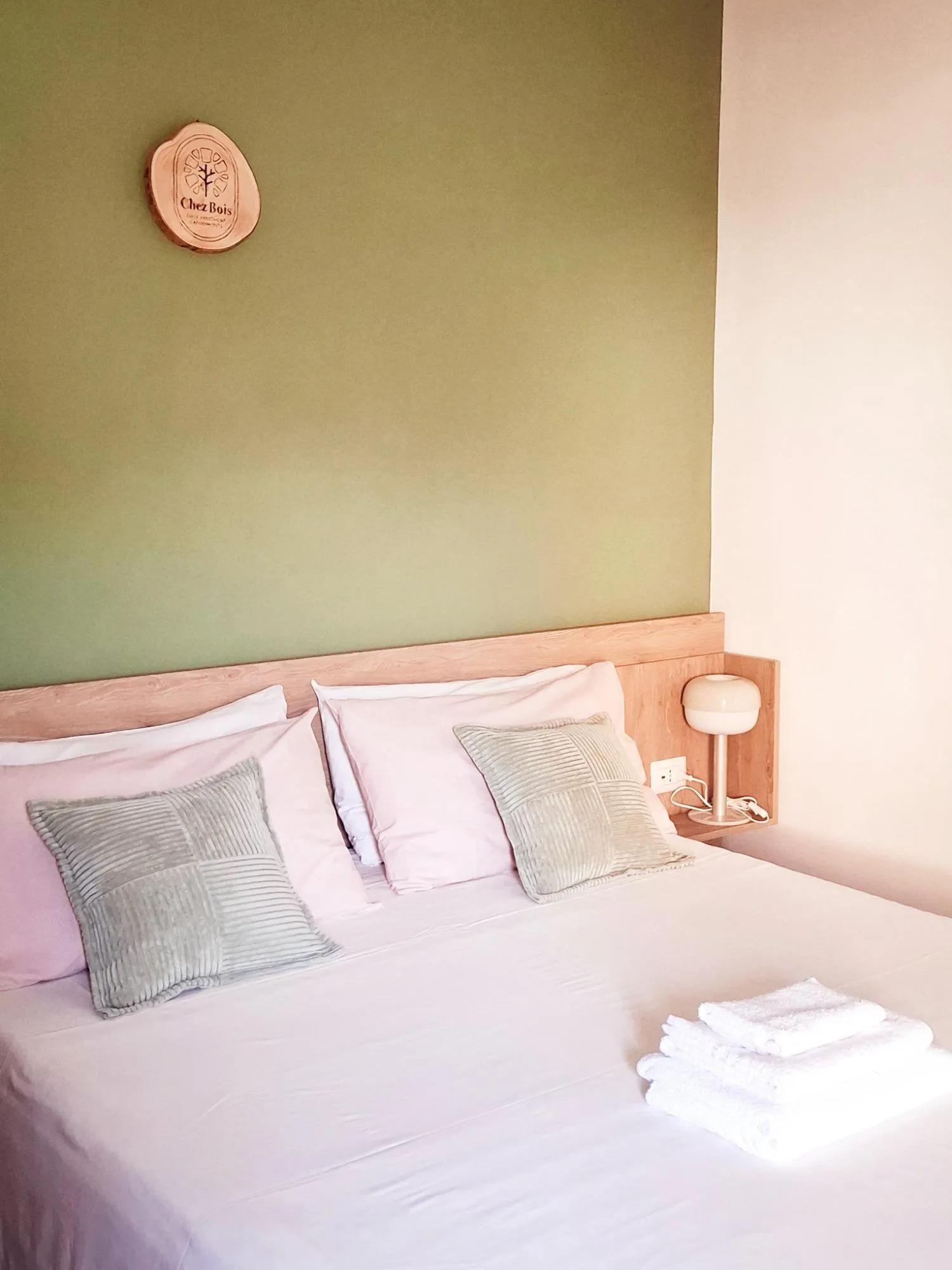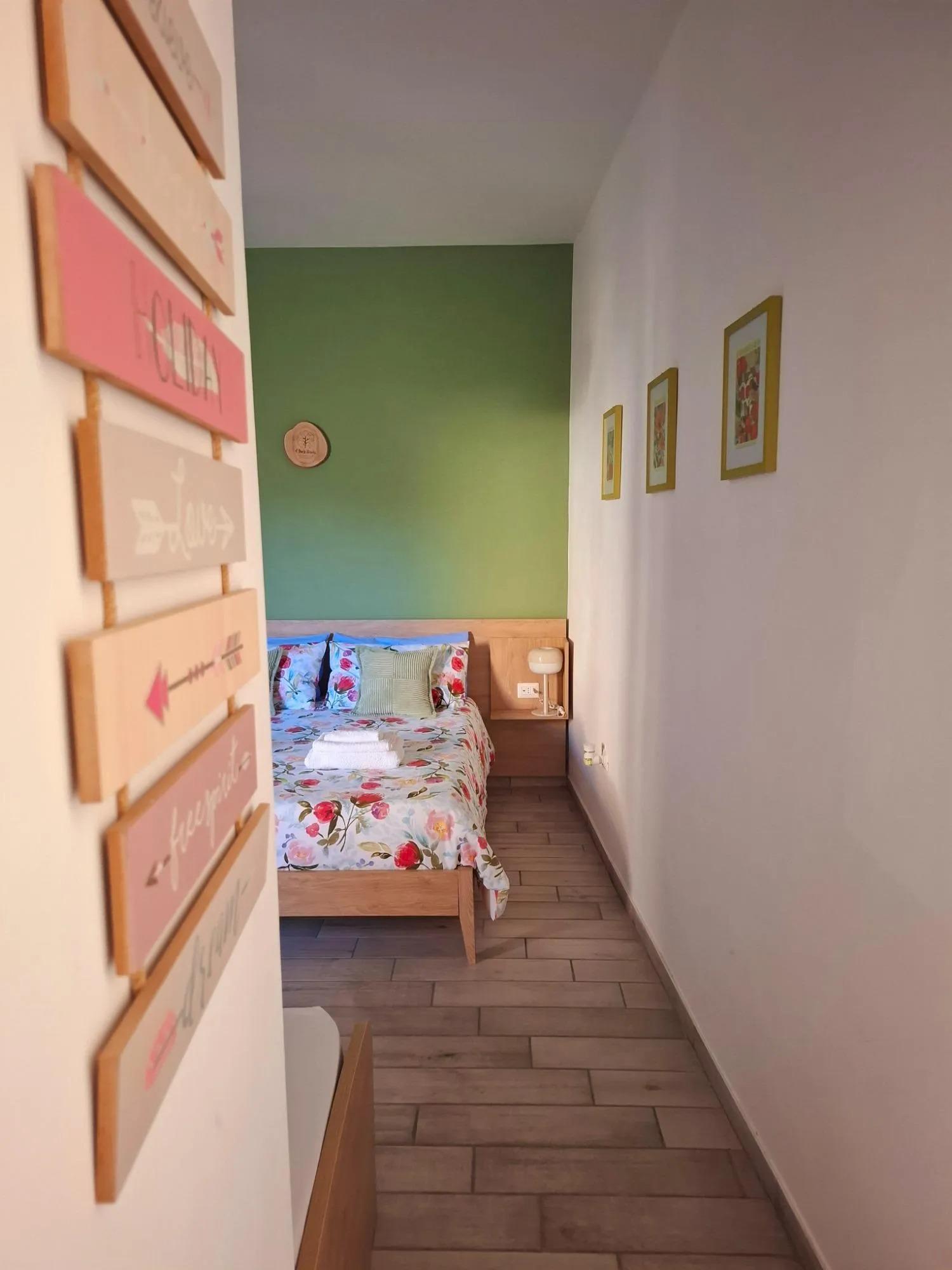 El interior está decorado con sencillez y elegancia, utilizando tonos naturales y detalles en madera que evocan la atmósfera relajante del parque cercano. El apartamento, de aproximadamente 30 metros cuadrados, cuenta con un dormitorio equipado con una cama matrimonial y una cama individual, un baño moderno con ducha y una cocina funcional, preparada para estancias independientes.