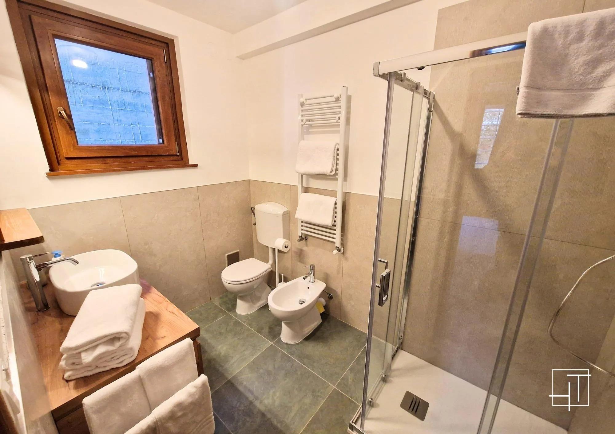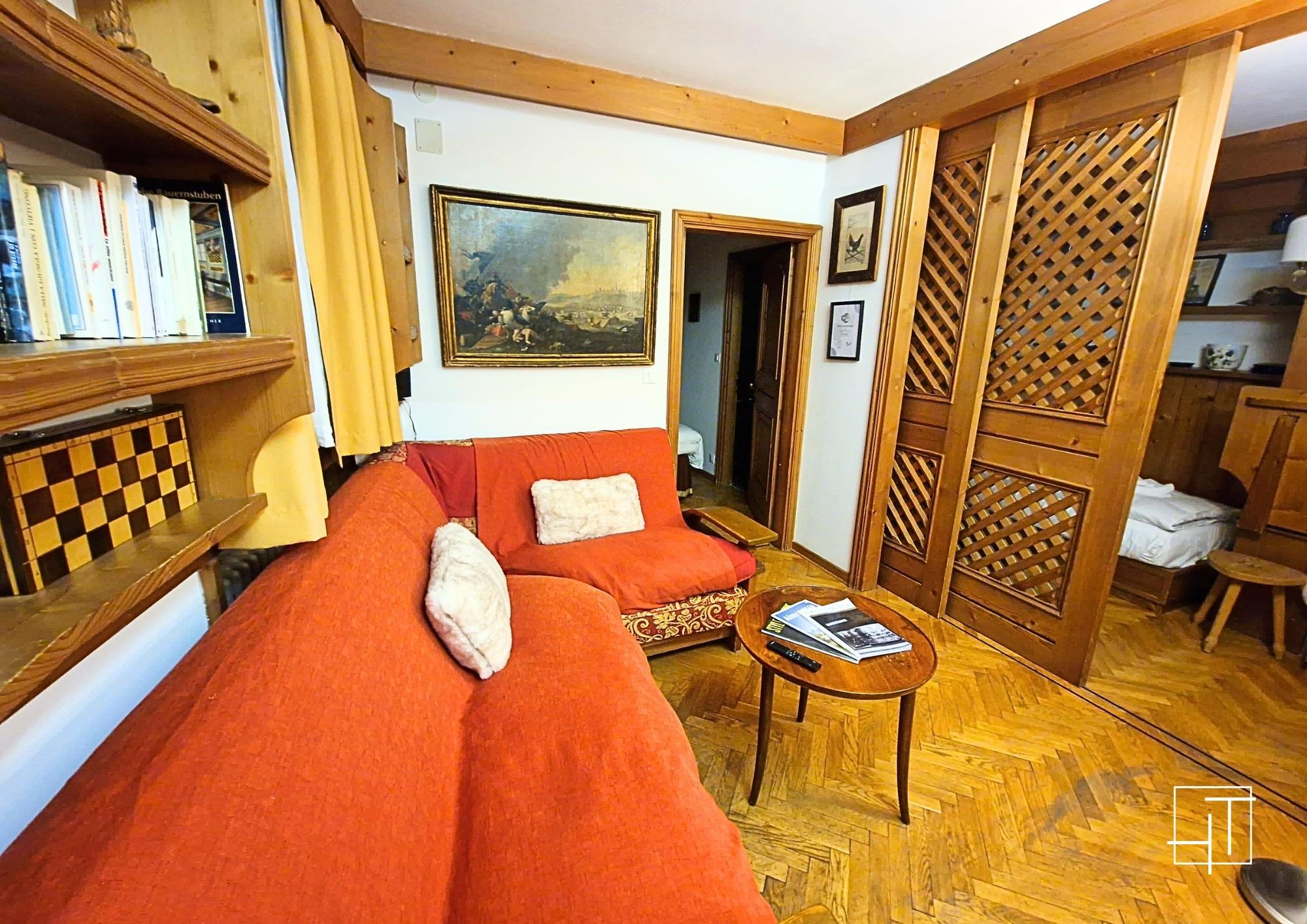 La zona giorno, luminosa e interamente rivestita in legno, è il fulcro della casa: un ampio soggiorno con tavolo da pranzo, divano angolare e Smart TV, ideale per condividere momenti di relax dopo una giornata sulle piste o tra le vie del centro. La cucina, moderna e completamente attrezzata, dispone di piano a induzione, forno a microonde, frigorifero con freezer, lavastoviglie e macchina del caffè, offrendo tutto il necessario per un soggiorno indipendente.
