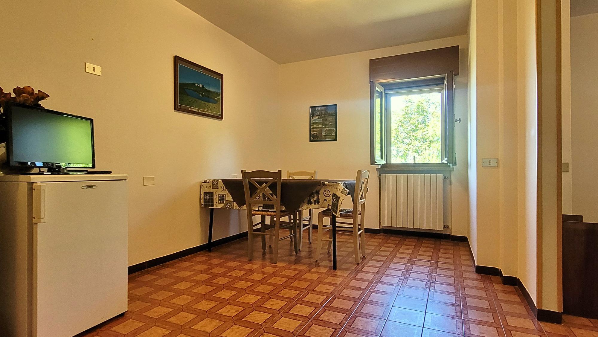 Large windows provide stunning views of the surrounding nature, making the stay a true opportunity for relaxation. The apartments come fully equipped with everything needed: linens, courtesy sets, kitchen utensils, dishes, a coffee maker, and a refrigerator with an induction cooktop, allowing guests to feel at home from the very first moment.