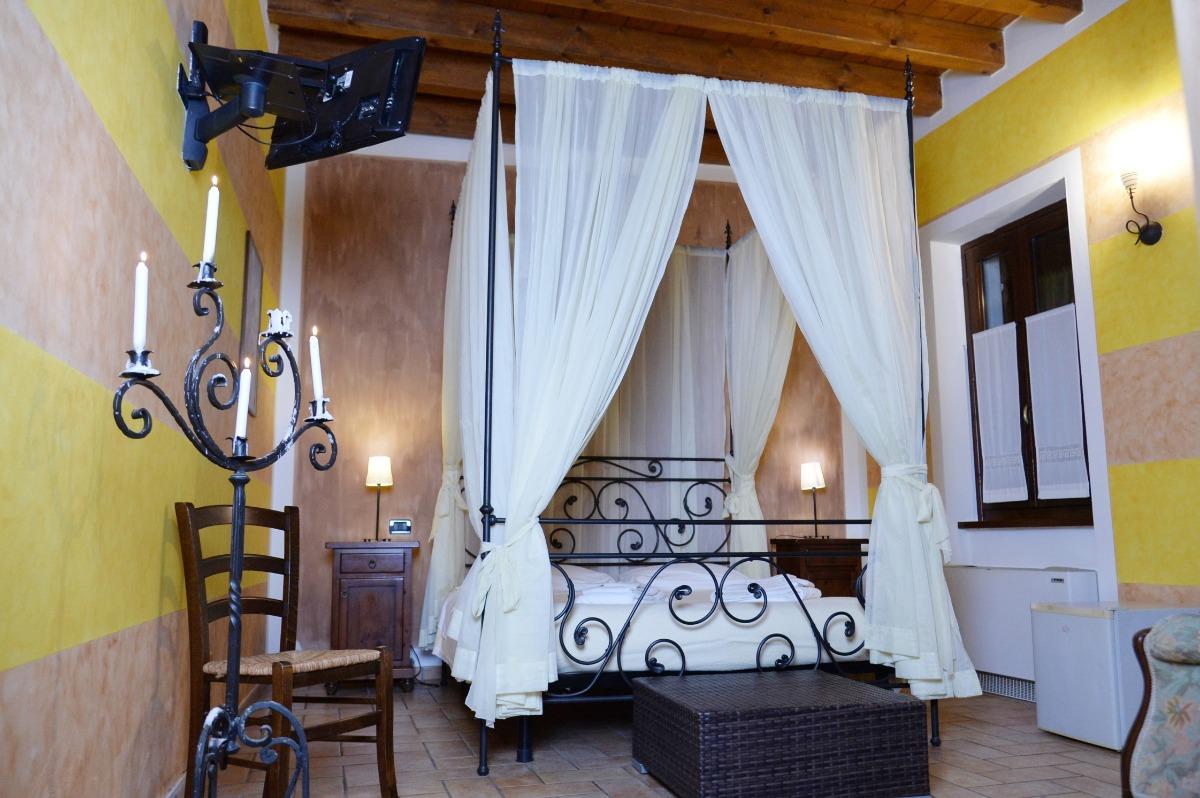 The day begins with a wholesome breakfast featuring homemade products, served on the terrace with views of the medieval village or in the cozy indoor lounge. Sweets, cookies, jams, honey, and juices come directly from the family-owned farm, which spans twelve hectares of fields and vineyards. Guests can also enjoy a swimming pool, a children's playground, and a barbecue area, perfect for relaxing outdoors.