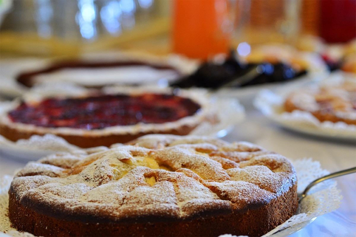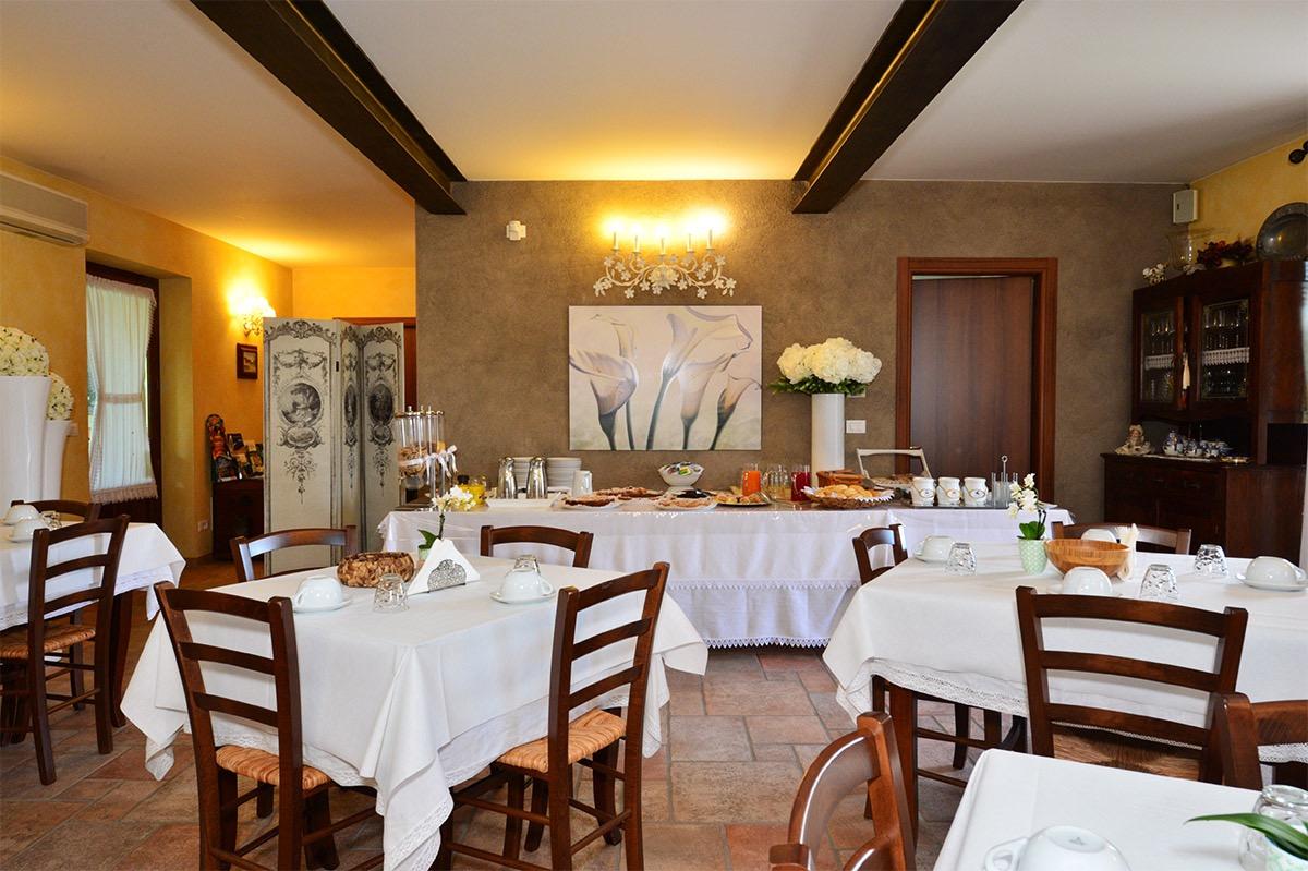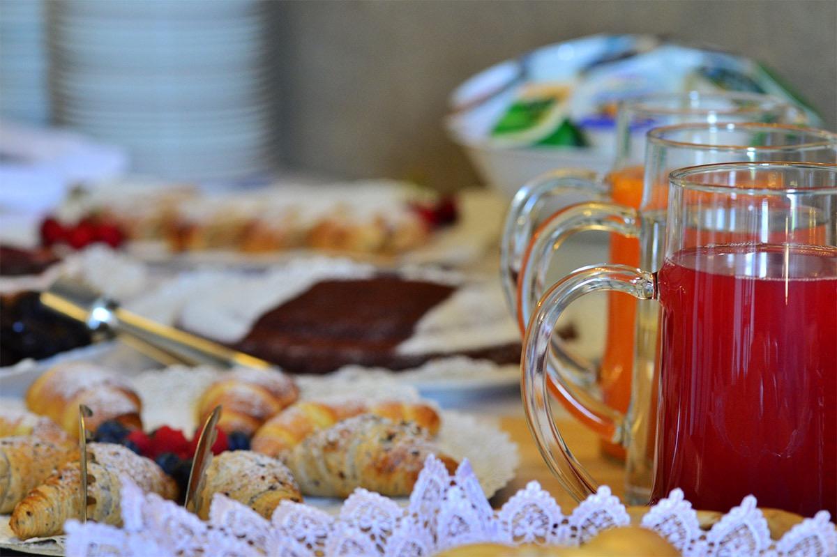 Guests can enjoy a rich buffet breakfast in the comfortable dining room or outdoors.