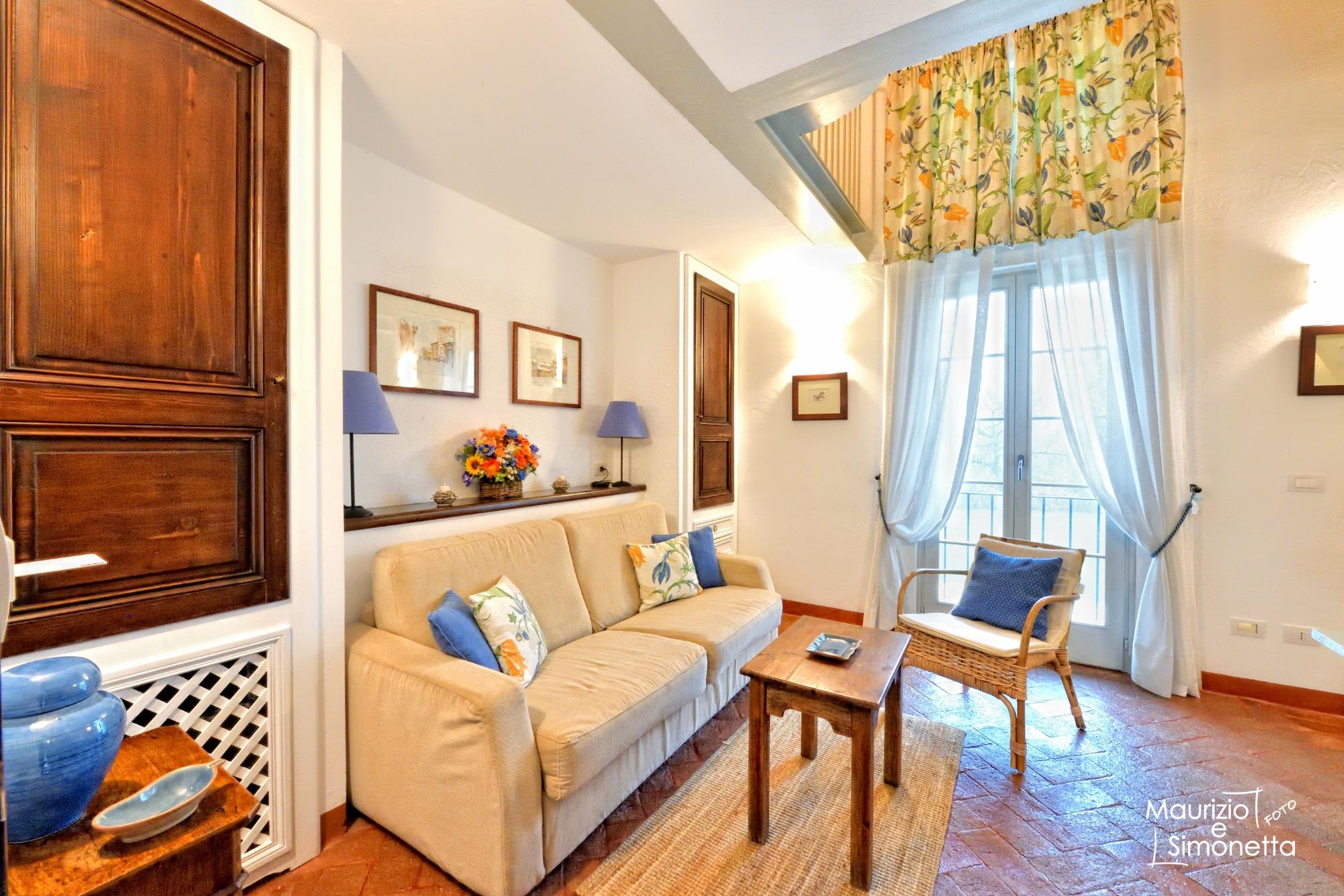 Accogliente bilocale composto da una camera con letto matrimoniale (o doppia a letti separati ) con bagno, 1 piccolo angolo cottura, ed una zona giorno composta da divano tavolo e seggiole. La cucina è completamente rifornita di pentole, stoviglie, utensili, piatti, posate e bicchieri.Sono sempre disponibili anche the, tisane ,caffè, zucchero.