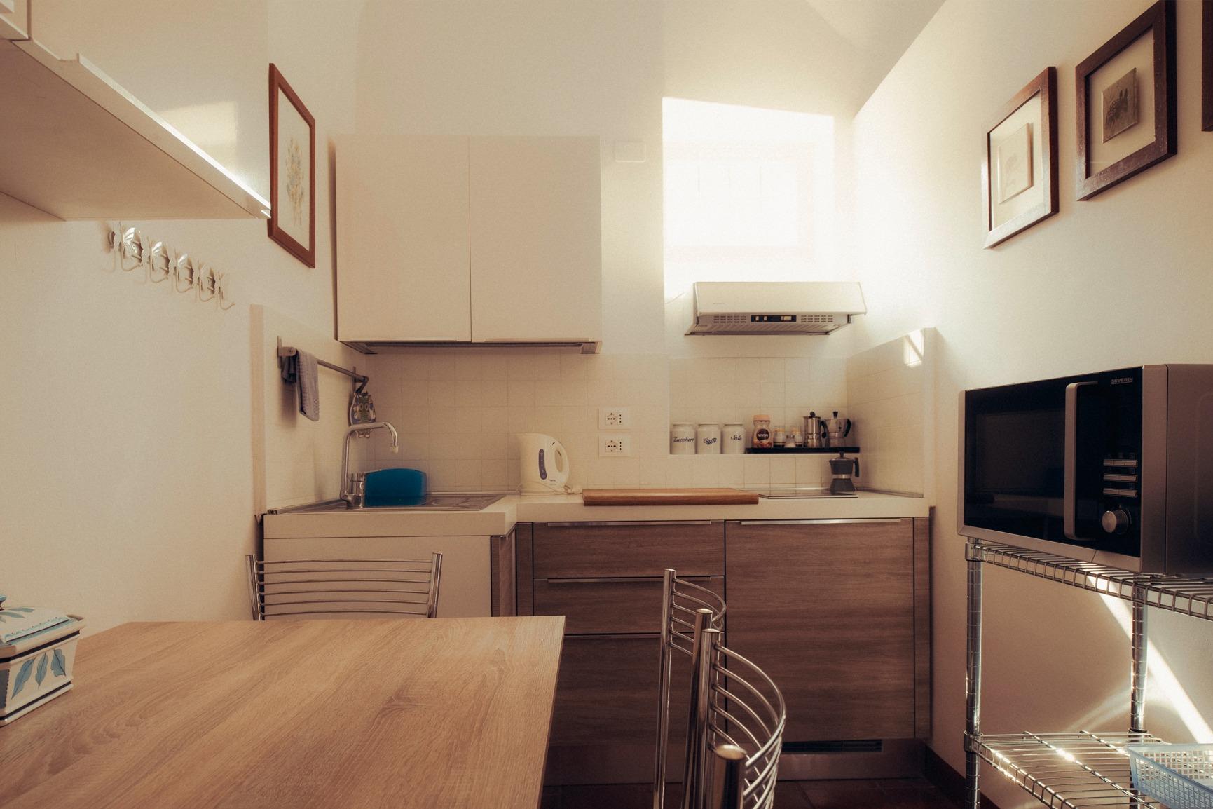 Accogliente alloggio composto da camera con letto matrimoniale e letto singolo , bagno, zona pranzo con piccolo angolo cottura . La cucina è completamente attrezzata con pentole, padelle, utensili, piatti, posate e bicchieri. Thè, tisane, caffè e zucchero sono sempre disponibili.