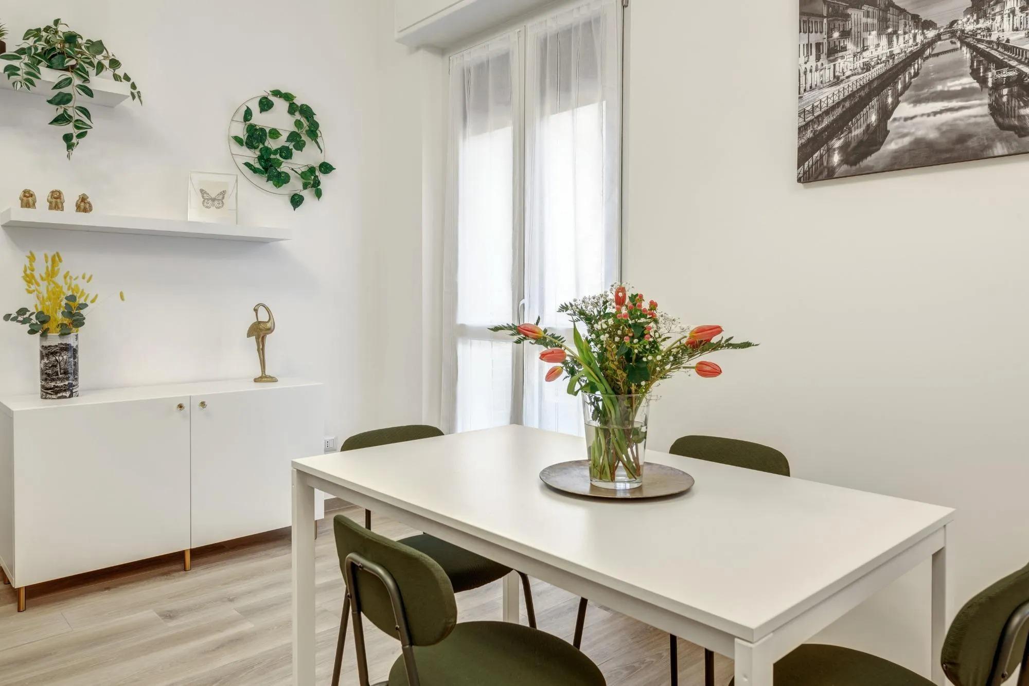 Un balcone collega tutte le stanze, offrendo uno spazio perfetto per iniziare la giornata con un caffè o rilassarsi con un bicchiere di vino al tramonto, immersi nel ritmo dinamico di Milano.