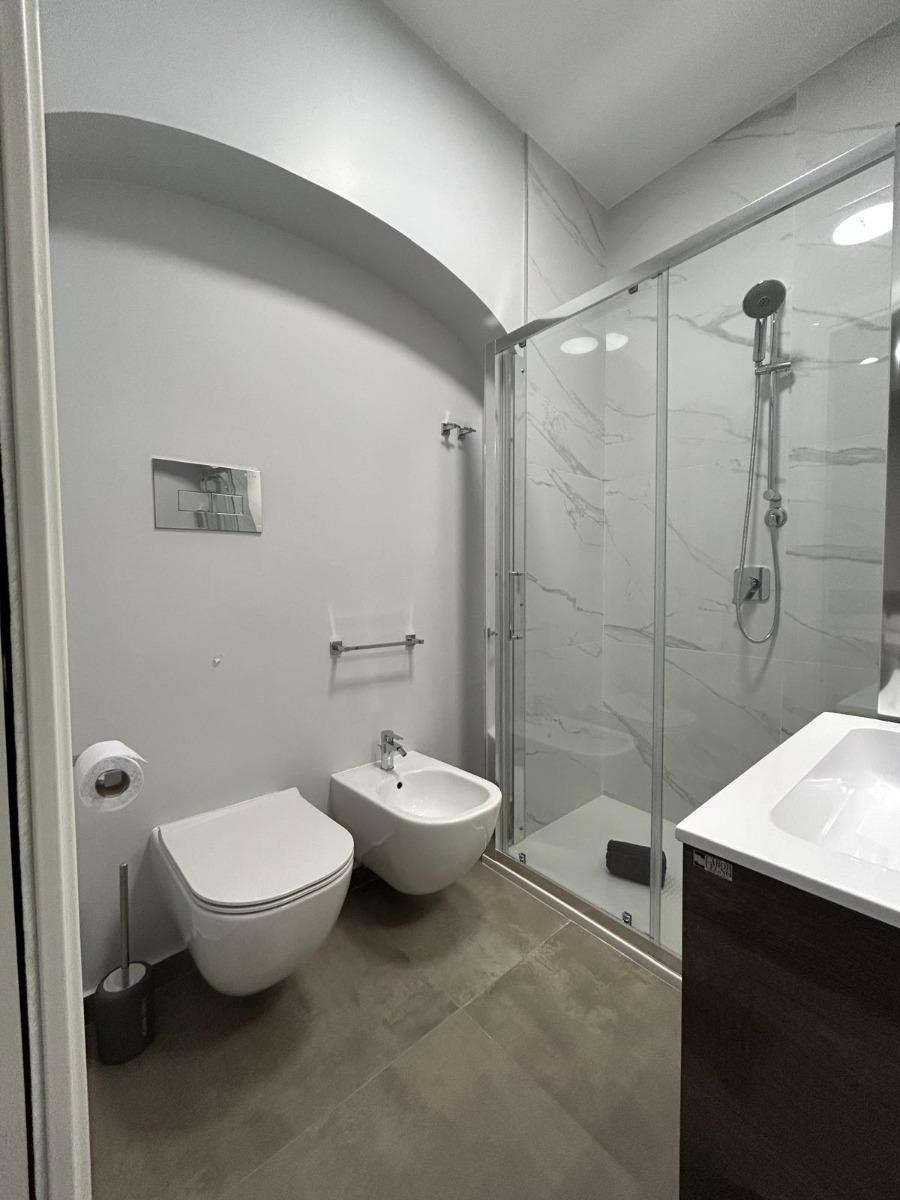 Il bagno privato , è collegato con la camera da letto e presenta tutti i confort, come una grande doccia e un set di cortesia che comprende oltre ai vari asciugamani anche sapone, bagnoschiuma e cuffia
