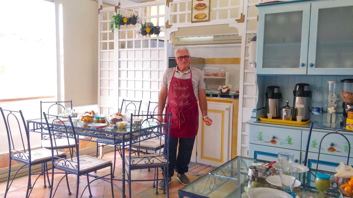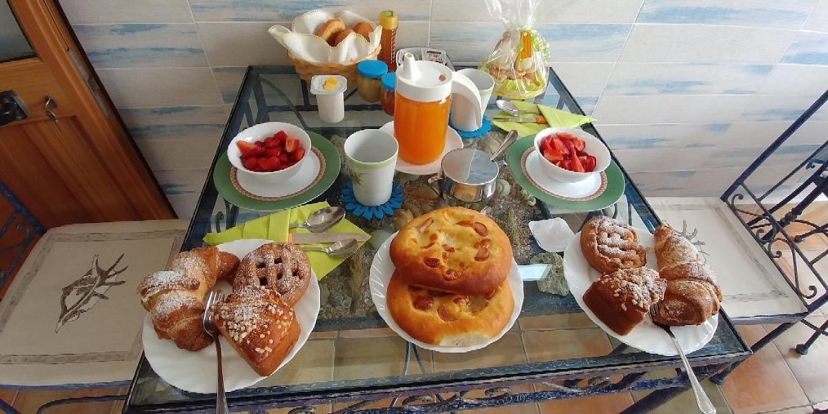 Every morning, Franco awaits you on his little terrace for breakfast, with his smile, his charm, and his little apron with the words "today I'm cooking". He'll make you everything and more, baking cakes, croissants, sandwiches, pies, savory pastries, and freshly cut fruit. You definitely won't be able to finish it all, so he'll pack you a bag to take to the beach. How delicious!