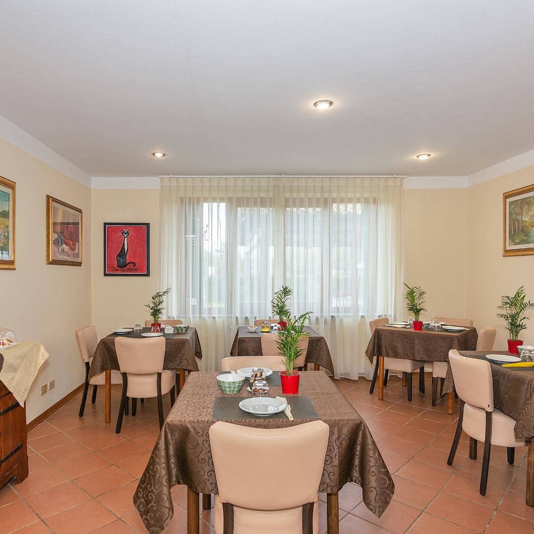 Our hotel offers our guests a delicious buffet breakfast with a wide selection of sweet and savory products. During the winter, breakfast is served indoors, while during the summer guests can enjoy breakfast outdoors in our lovely garden.