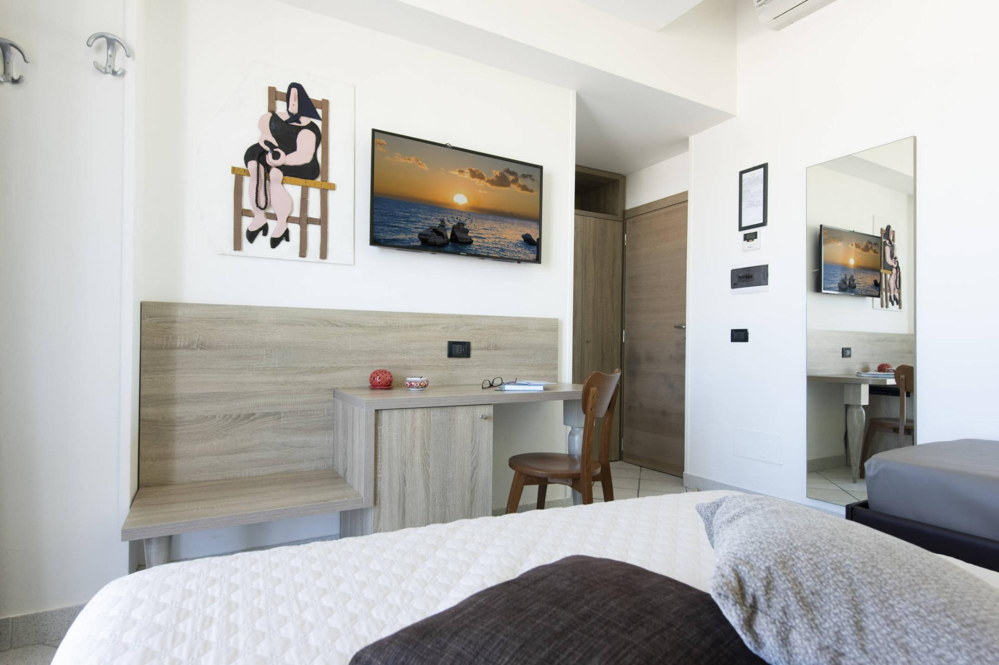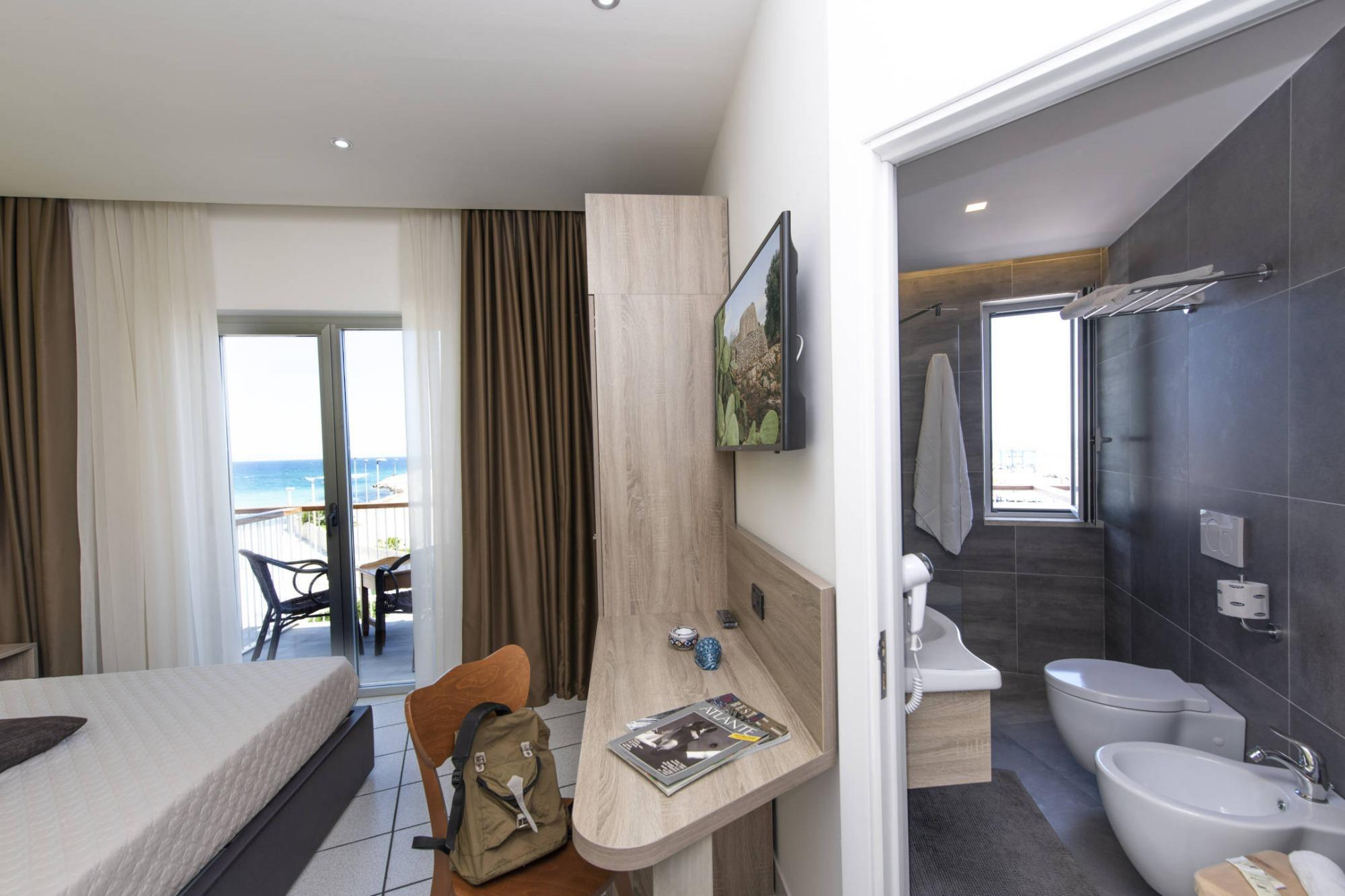 A pocos pasos de la playa y con vistas al paseo marítimo de San Foca, el hotel recibe a sus huéspedes en espacios luminosos, cuidados y sumergidos en la atmósfera relajante del Salento. Las habitaciones, equipadas con balcón o patio privado, ofrecen comodidades modernas en un estilo que evoca la identidad mediterránea. Las áreas comunes, como la terraza con vista al mar y el bar, están diseñadas para acompañar cada momento del día con sencillez y elegancia. La atención a los detalles y la ubicación estratégica convierten a este establecimiento en un referente para quienes buscan unas vacaciones auténticas en el mar Adriático.