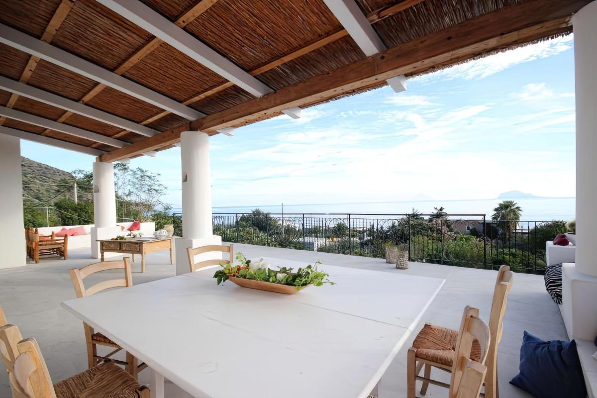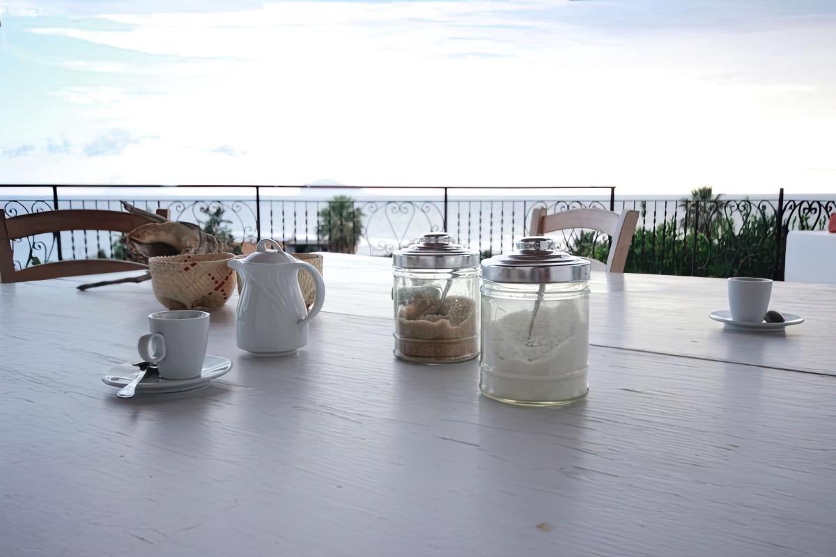 Das italienische Frühstück mit typischen Produkten und Marmeladen, die von der Gastgeberin selbst hergestellt werden, wird auf der großen Terrasse mit Meerblick serviert, von der aus man eine fabelhafte Aussicht auf Stromboli und Panarea genießen kann.