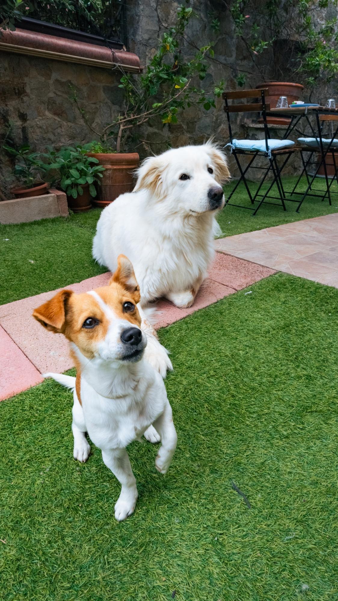 We also have the pleasure of hosting two affectionate and calm dogs, who are accustomed to interacting with our guests.