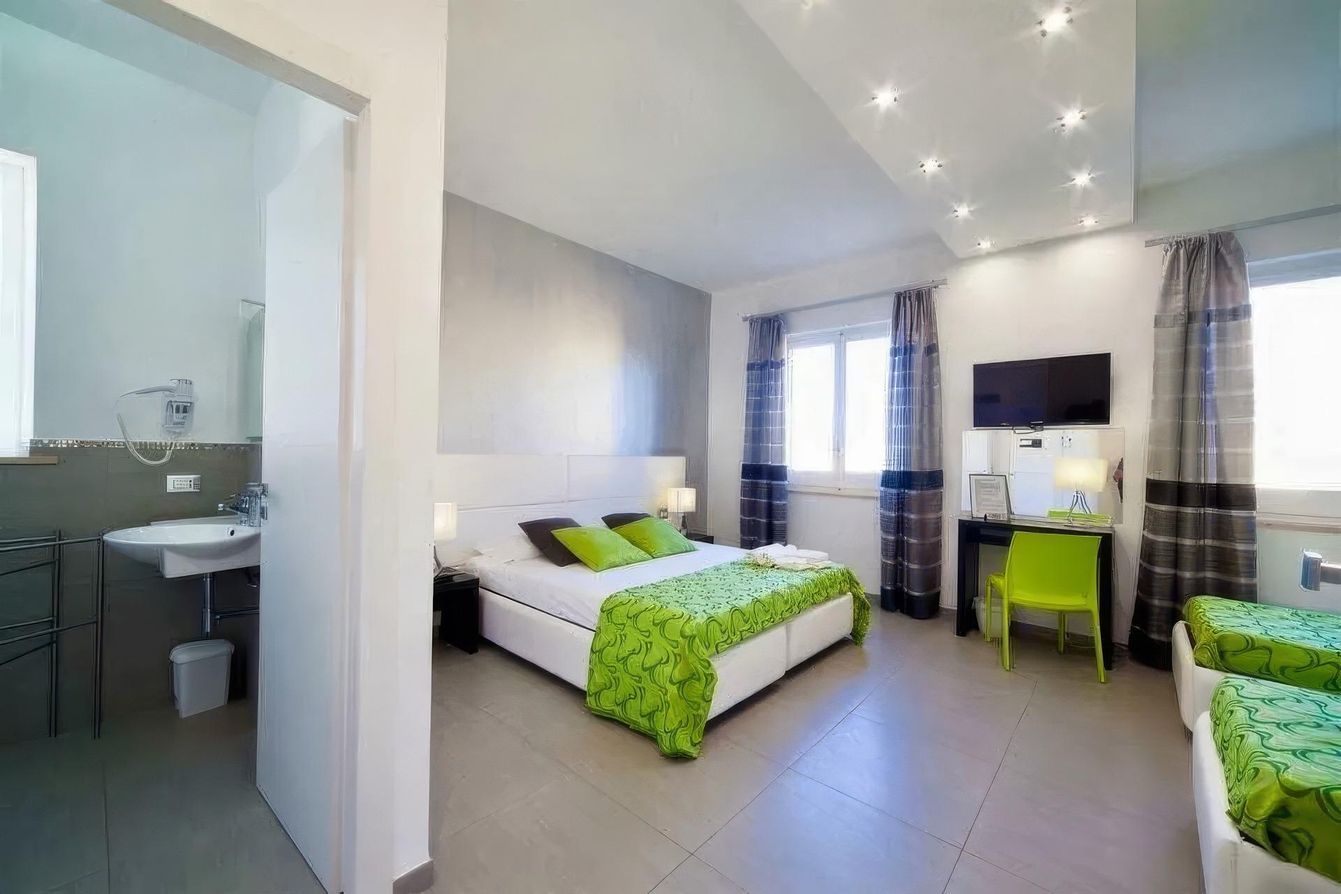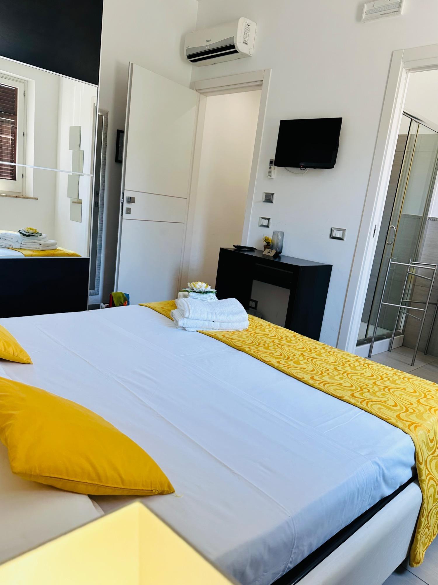 Le camere sono arredate con gusto contemporaneo e dotate di aria condizionata, TV LED, cassaforte, frigobar e bagno privato completo di asciugacapelli e set di cortesia. Alcune offrono un balconcino esterno, mentre una dispone di un’ampia veranda attrezzata. La connessione Wi-Fi è disponibile gratuitamente nella zona reception e nella veranda, dove ogni mattina viene servita la colazione, ricca e variegata, con specialità dolci e salate, tra cui prodotti tipici siciliani, croissant, yogurt, frutta fresca e bevande calde e fredde.