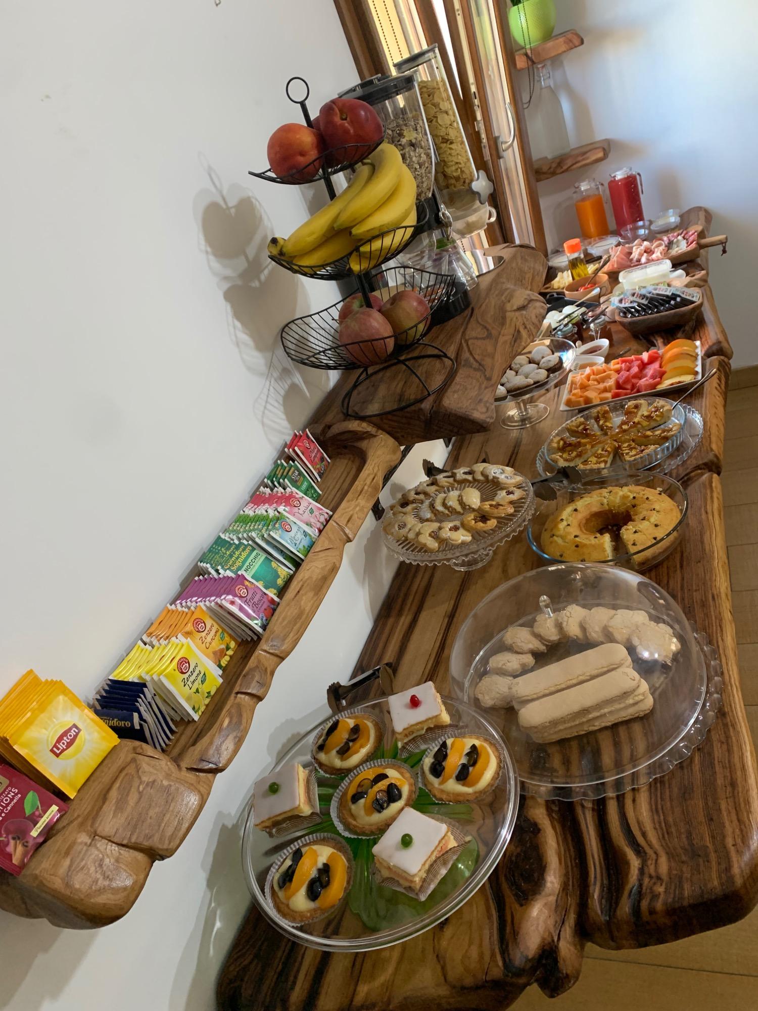 La colazione, servita ogni mattina, è un momento conviviale e curato, con un ricco assortimento di proposte dolci e salate. Torte fatte in casa, marmellate artigianali, pane fragrante, miele, salumi e formaggi locali compongono un’offerta che valorizza i sapori della tradizione e la genuinità degli ingredienti.