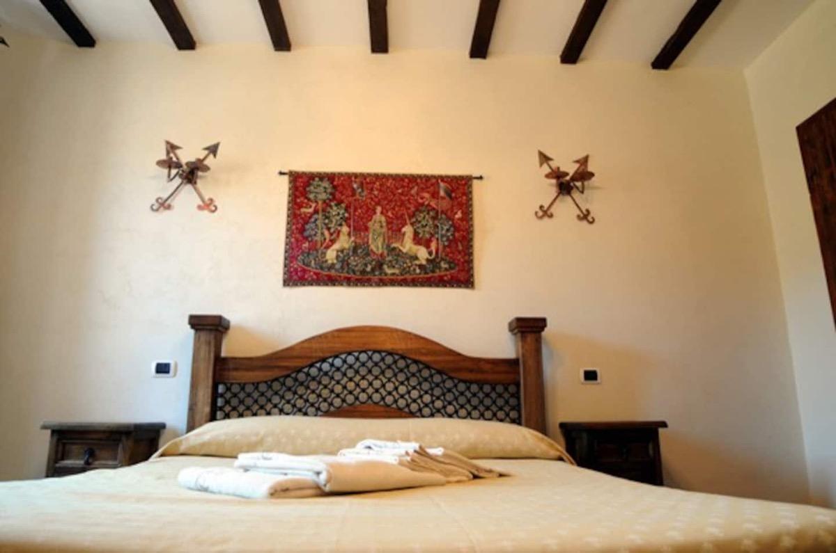 Deliziosa e confortevole dimora situata nel cuore del centro storico di Tivoli, nella medievale contrada di San Paolo, a due passi dal Duomo di San Lorenzo e dalle splendide Villa d’Este e Villa Gregoriana. Ricavata all’interno di un caratteristico palazzetto medievale, la deliziosa “dimora del ghibellino” offre ai suoi ospiti la possibilità di trascorrere una piacevole e rilassante vacanza in un ambiente raffinato ed elegante. Ristrutturata nel rispetto del contesto storico-architettonico nel quale sorge non manca però dei più moderni comfort. Durante i lavori di ristrutturazione è stato riportato alla luce lo splendido soffitto originale con travi a vista; i mobili scelti sono frutto di creazioni artigianali uniche nel loro genere, così come le porte delle stanze, fedeli riproduzioni di modelli antichi con caratteristici chiavistelli. Ad adornare le pareti, lanterne e torce in rame realizzate a mano e splendidi arazzi delle Fiandre con scene di vita medievale. La dimora mette a disposizione dei suoi ospiti due camere da letto, un salone con camino, un ampio bagno con doccia, un piccolo soppalco e un terrazzino con incantevole vista su Tivoli, attrezzato con tavolo e sedie dove mangiare, prendere il sole o guardare le stelle!