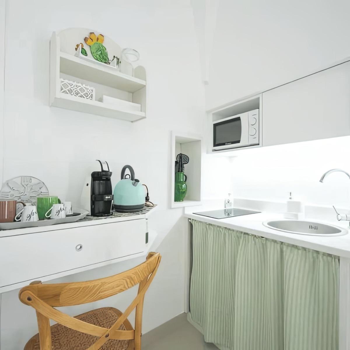 La struttura si compone di due piani ben distribuiti e pensati per offrire il massimo comfort. Al primo piano si trova un accogliente angolo cottura completamente attrezzato, una zona giorno curata nei dettagli e un piccolo bar, ideale per iniziare la giornata o concedersi un momento di relax. Gli ambienti sono climatizzati, dotati di TV e connessione Wi-Fi gratuita.