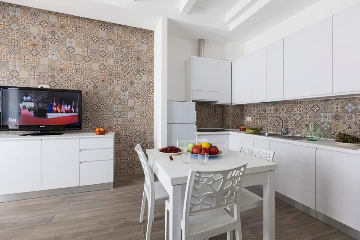 - un soggiorno con un comodo divano , televisione, cucina attrezzata, piano cottura a induzione, frigorifero e lavastoviglie.