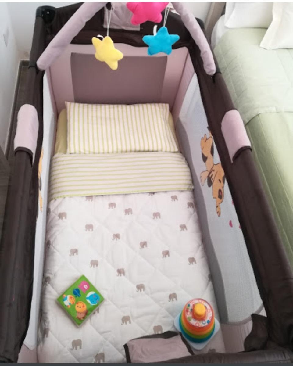 - lettino, seggiolone, fasciatoio, vaschetta per bambini, piatti, giocattoli e libri per bambini
