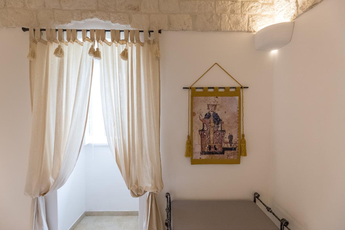The "San Quirico" Residence is the result of the careful restoration of a typical cottage in the Itria Valley, dating back to 1928. Originally, the house consisted of only three rooms: the entrance, the kitchen with a large fireplace on the left, and the bedroom on the right, in addition to the cellar below and the water cistern even further down, which is said to have been the largest in the area.