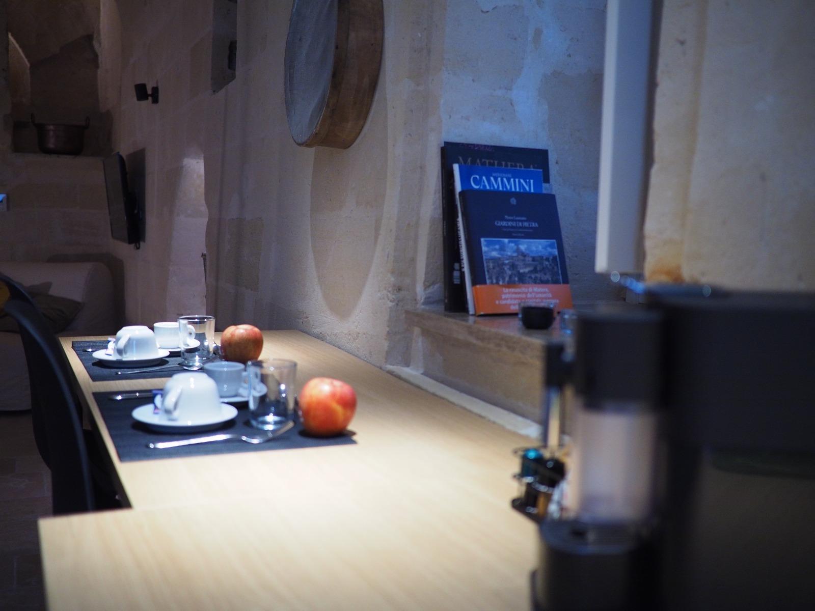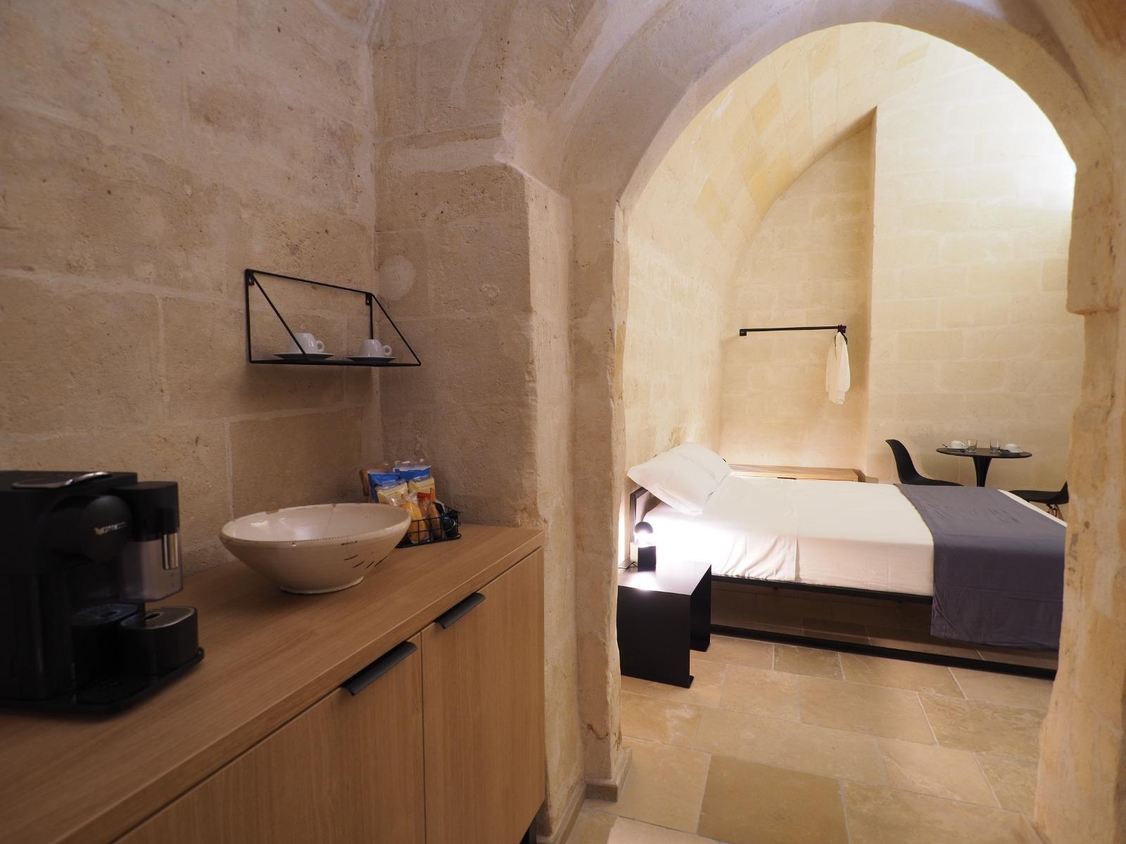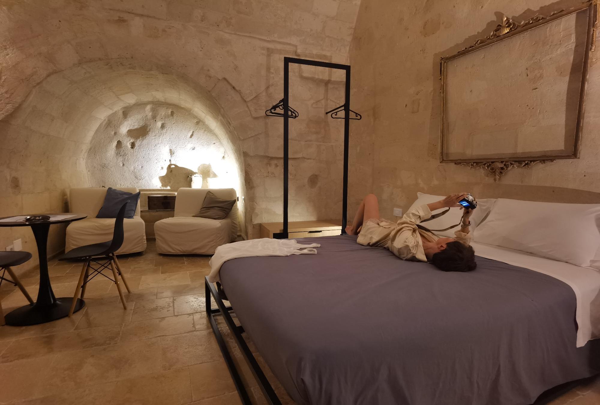 A completare l’esperienza, un suggestivo terrazzo panoramico regala una splendida vista sulla Cattedrale, mentre alcune camere dispongono di balconcino o terrazzino privato. La camera deluxe, con vasca idromassaggio e doccia a cascata, offre un’esperienza sensoriale unica tra le atmosfere intime dei Sassi.