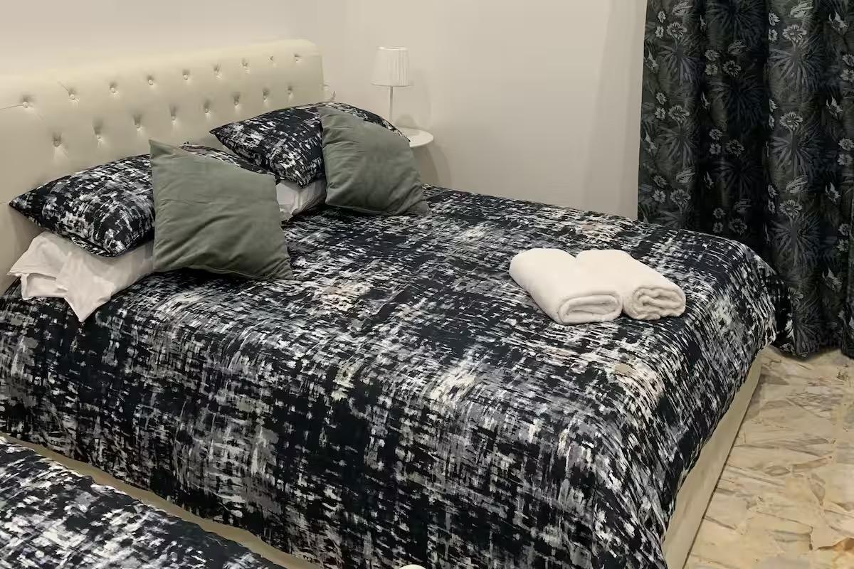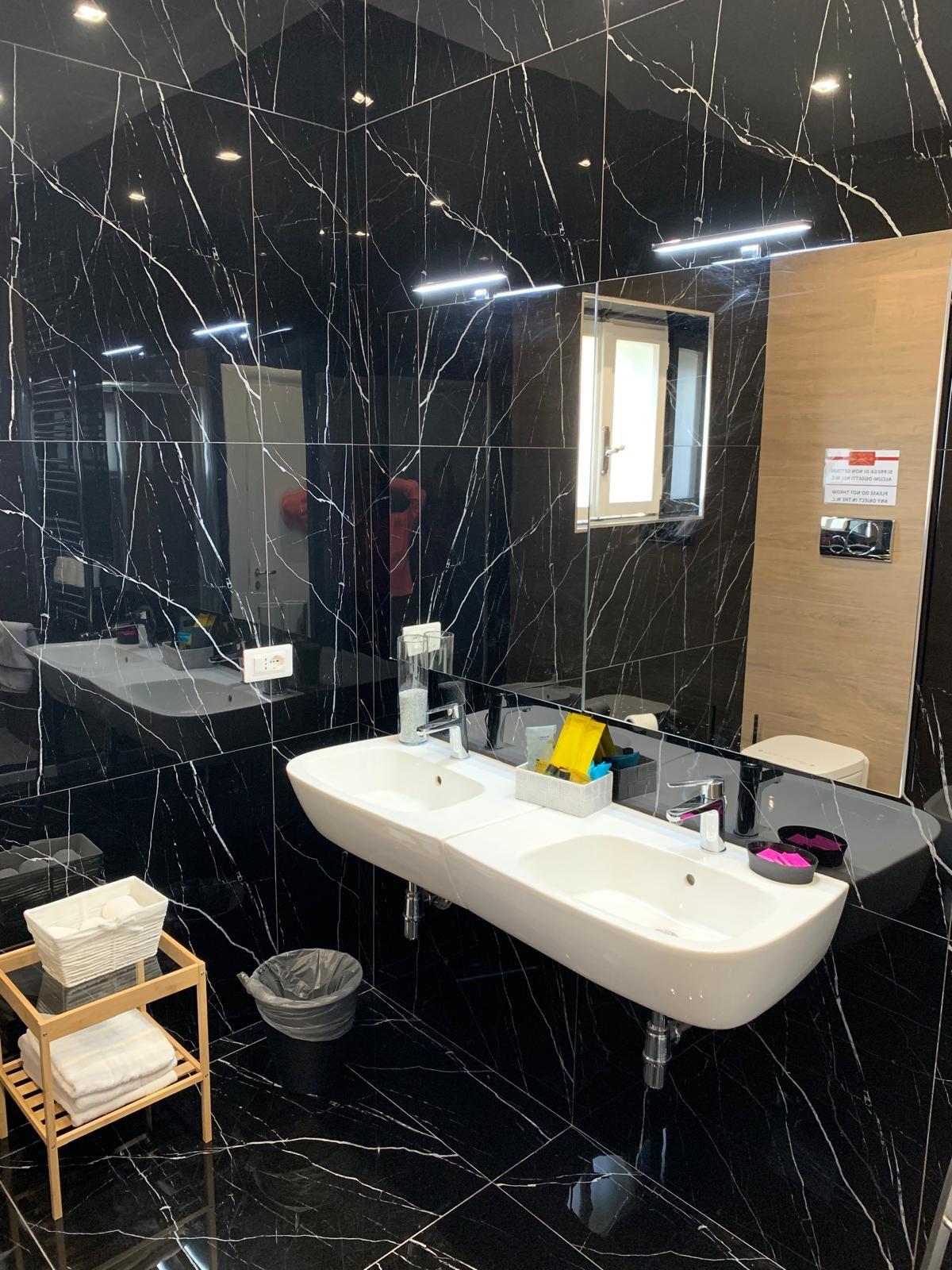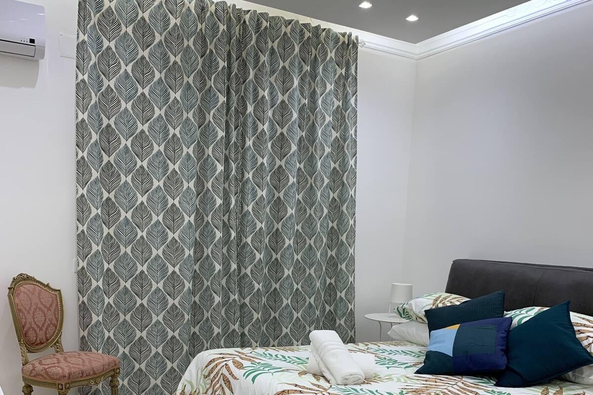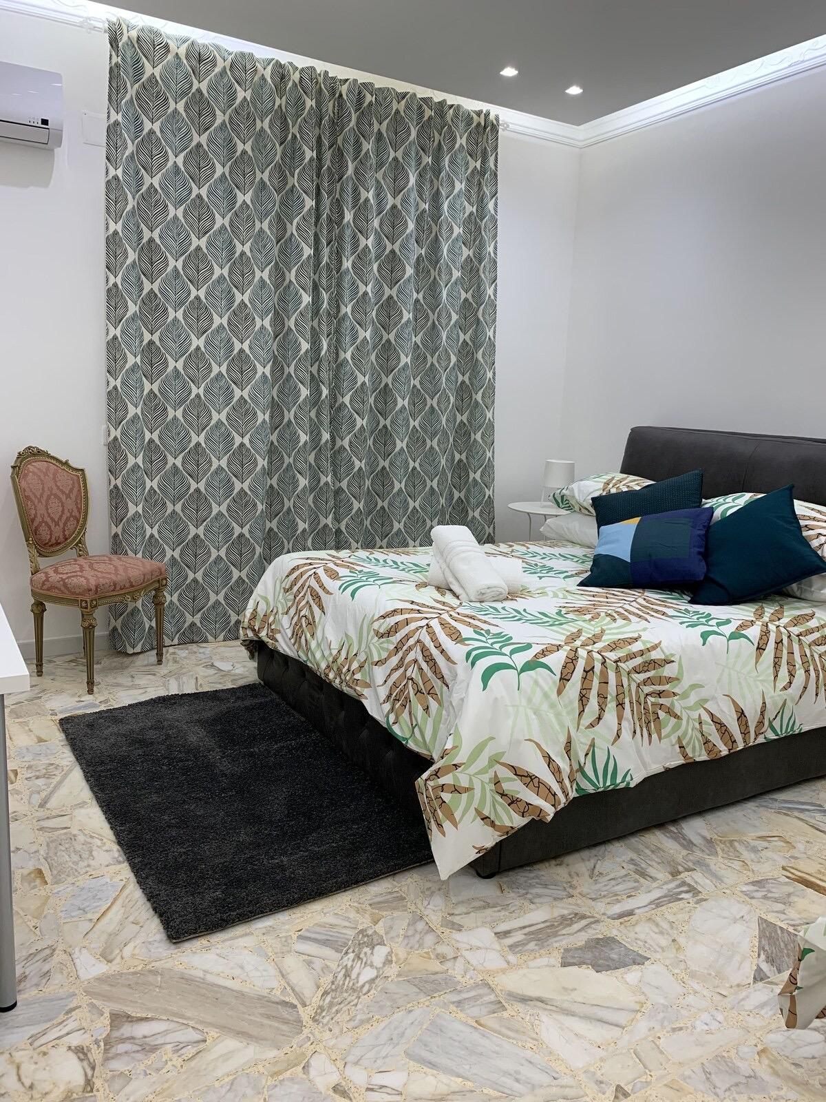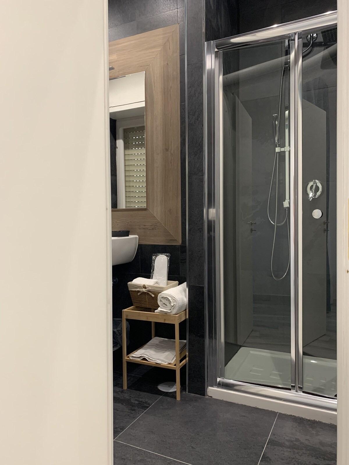 Camera matrimoniale super accogliente con bagno privato in camera, con doccia filo pavimento e termoarredo. Predispone di un letto king size, biancheria da letto e da bagno, minifrigo, bollitore, tv schermo piatto, asciugacapelli e aria condizionata.