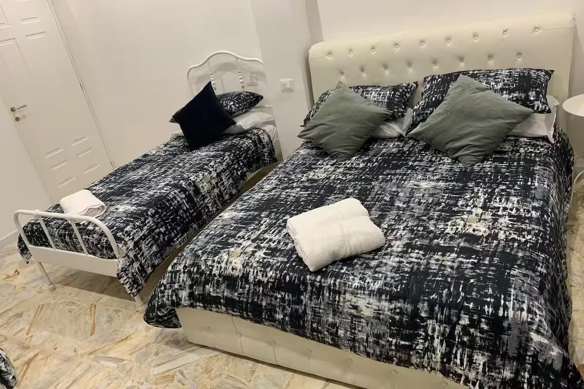 Camera quadrupla con bagno esterno privato dotata di un letto king size e due letti singoli, dotato di ogni confort: