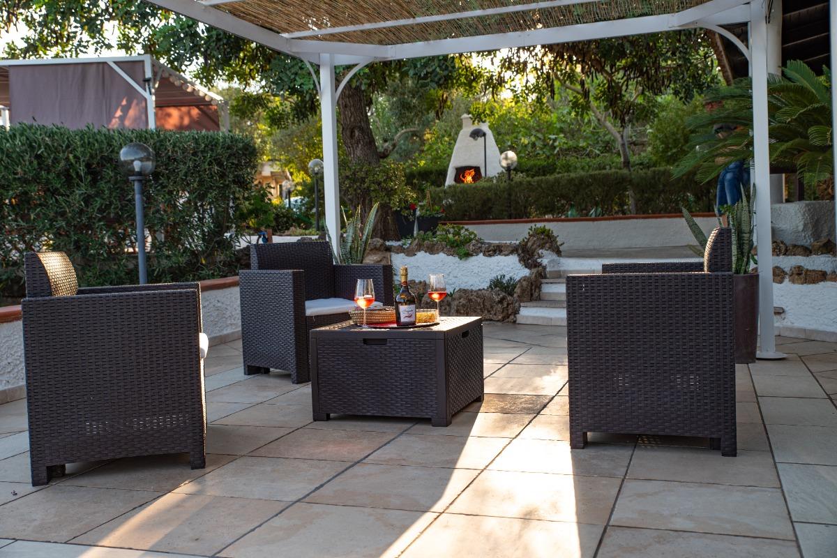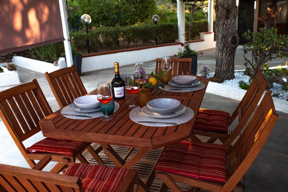 All’esterno, gli ospiti possono godere di un’ampia area privata che include un giardino, una terrazza coperta, una terrazza aperta, un barbecue e una doccia esterna, ideale per rilassarsi o pranzare all’aperto. Le terrazze sono arredate per offrire massimo comfort e piacevoli momenti all’ombra.