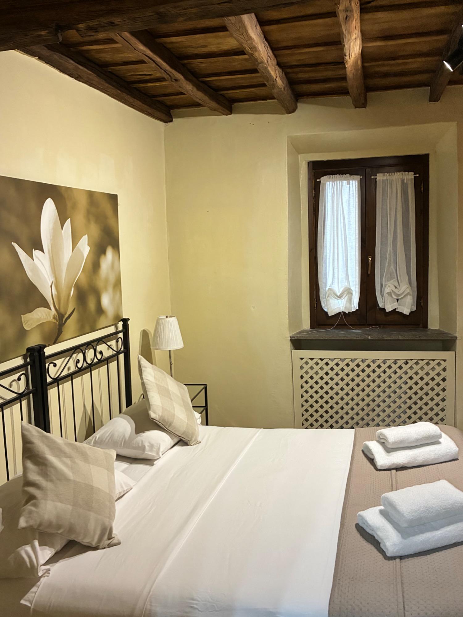 In the vibrant heart of Rome, just a short stroll from Piazza Navona and Campo de’ Fiori, Domus Antica Navona welcomes guests into an elegant apartment located on the first floor of a historic building. The ambiance reflects the genuine charm of Roman residences, featuring exposed beams and vintage details that blend seamlessly with modern comforts.