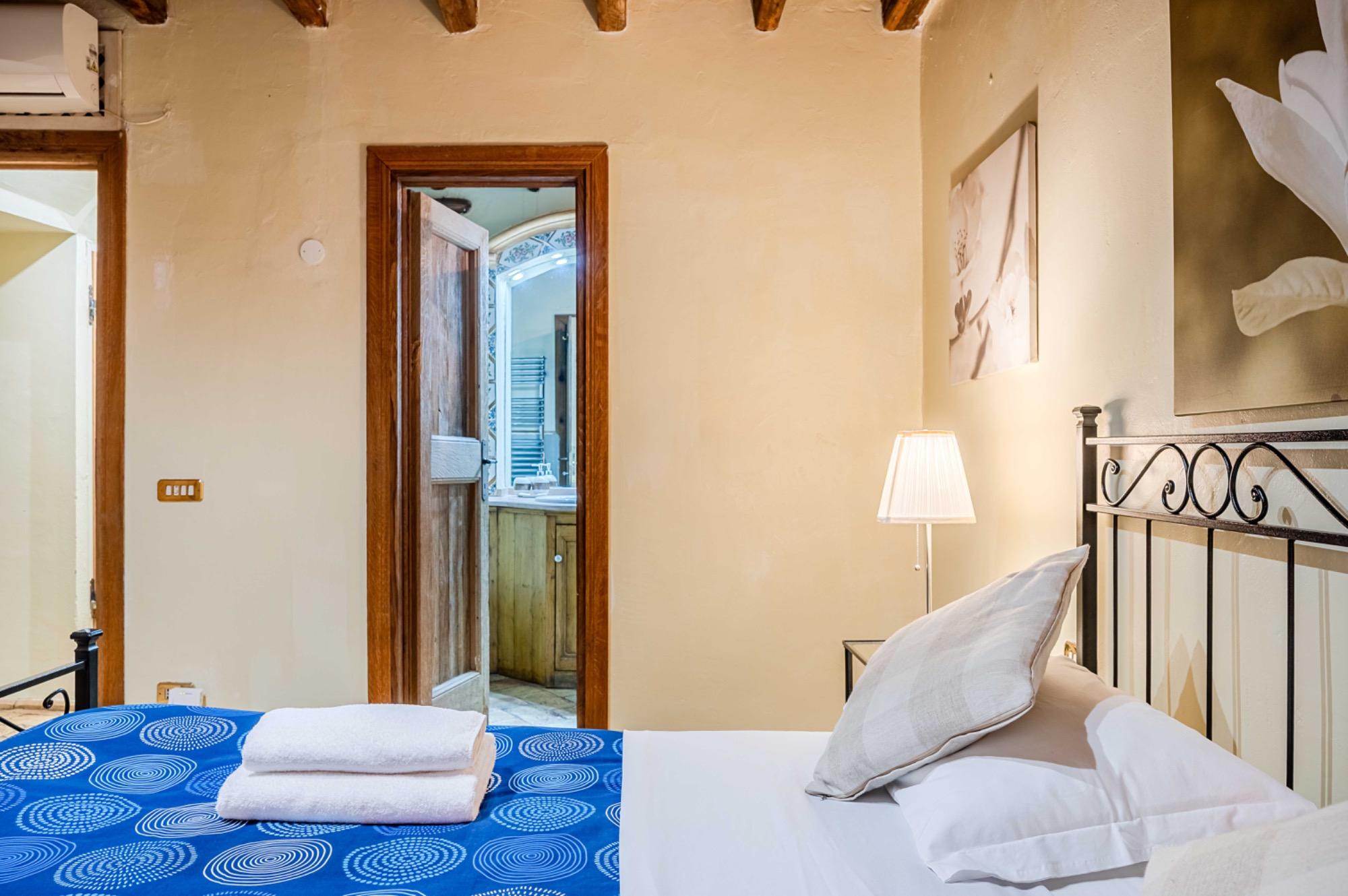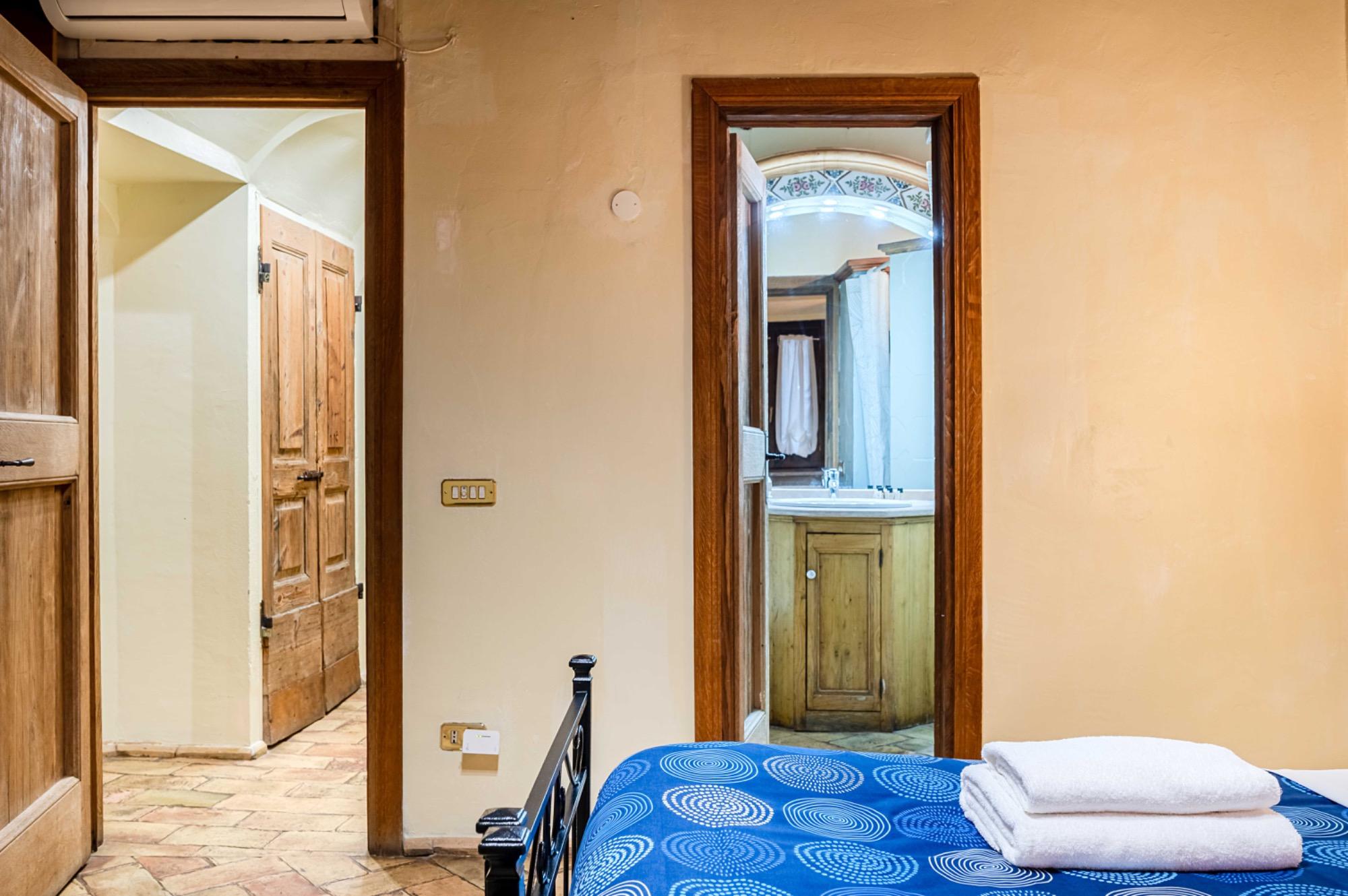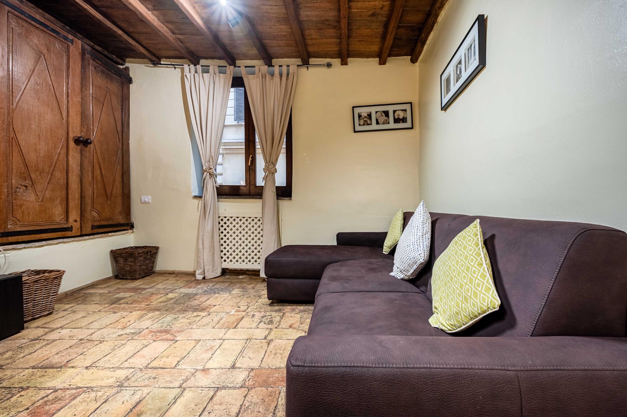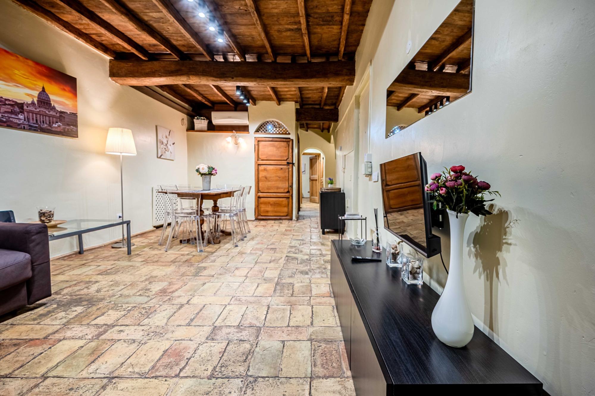 Nel cuore pulsante di Roma, a pochi passi da Piazza Navona e Campo de’ Fiori, Domus Antica Navona accoglie gli ospiti in un raffinato appartamento situato al primo piano di una palazzina storica. L’atmosfera è quella autentica delle dimore romane, con travi a vista e dettagli d’epoca che convivono armoniosamente con tutti i comfort moderni.