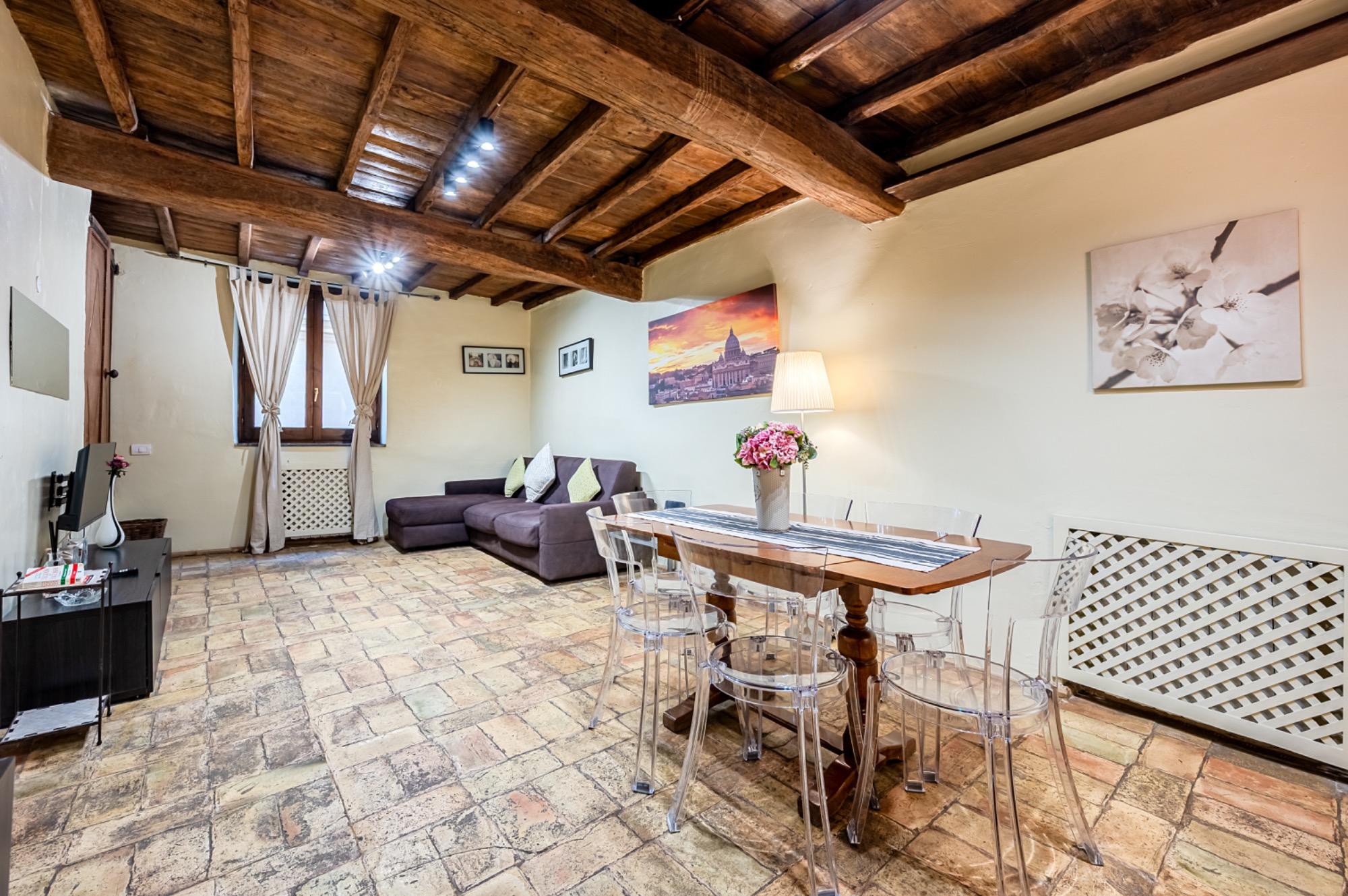 L’appartamento, curato con attenzione in ogni particolare, è pensato per offrire un soggiorno piacevole e rilassante, perfetto per immergersi nell’essenza della città eterna. La posizione centrale permette di raggiungere comodamente a piedi i principali luoghi di interesse storico e culturale, mentre nei dintorni non mancano caffè storici, ristoranti tipici e botteghe romane.