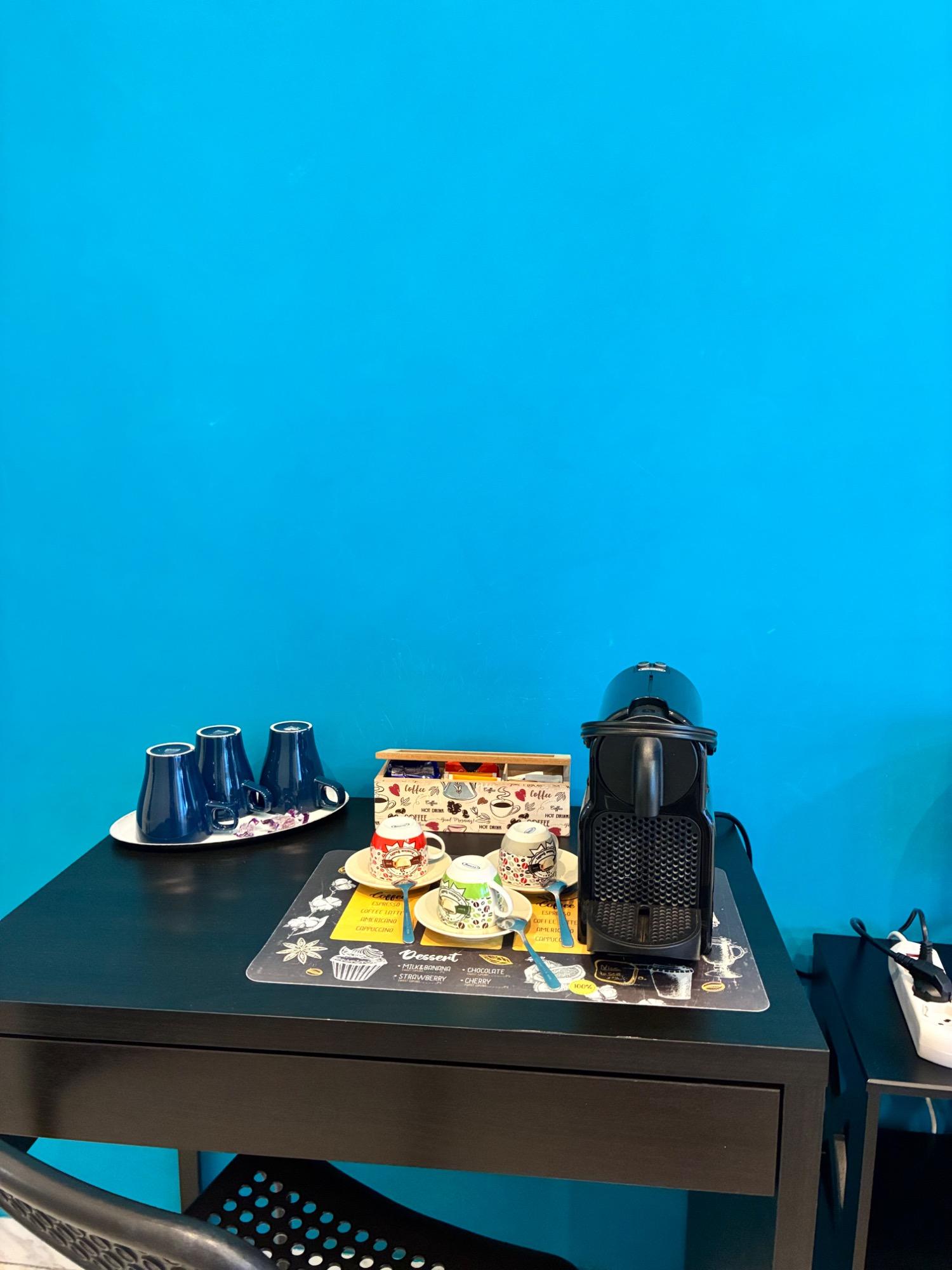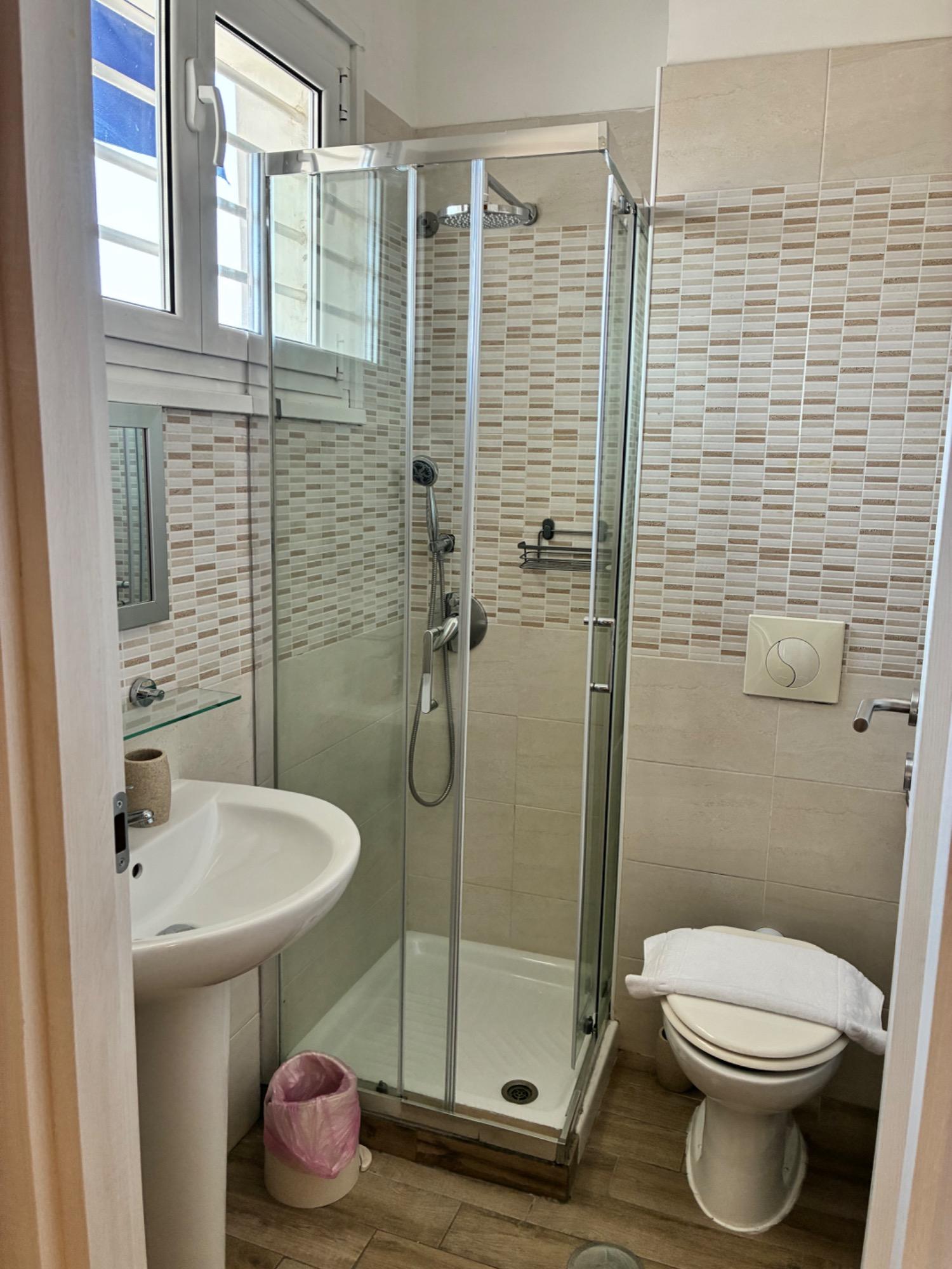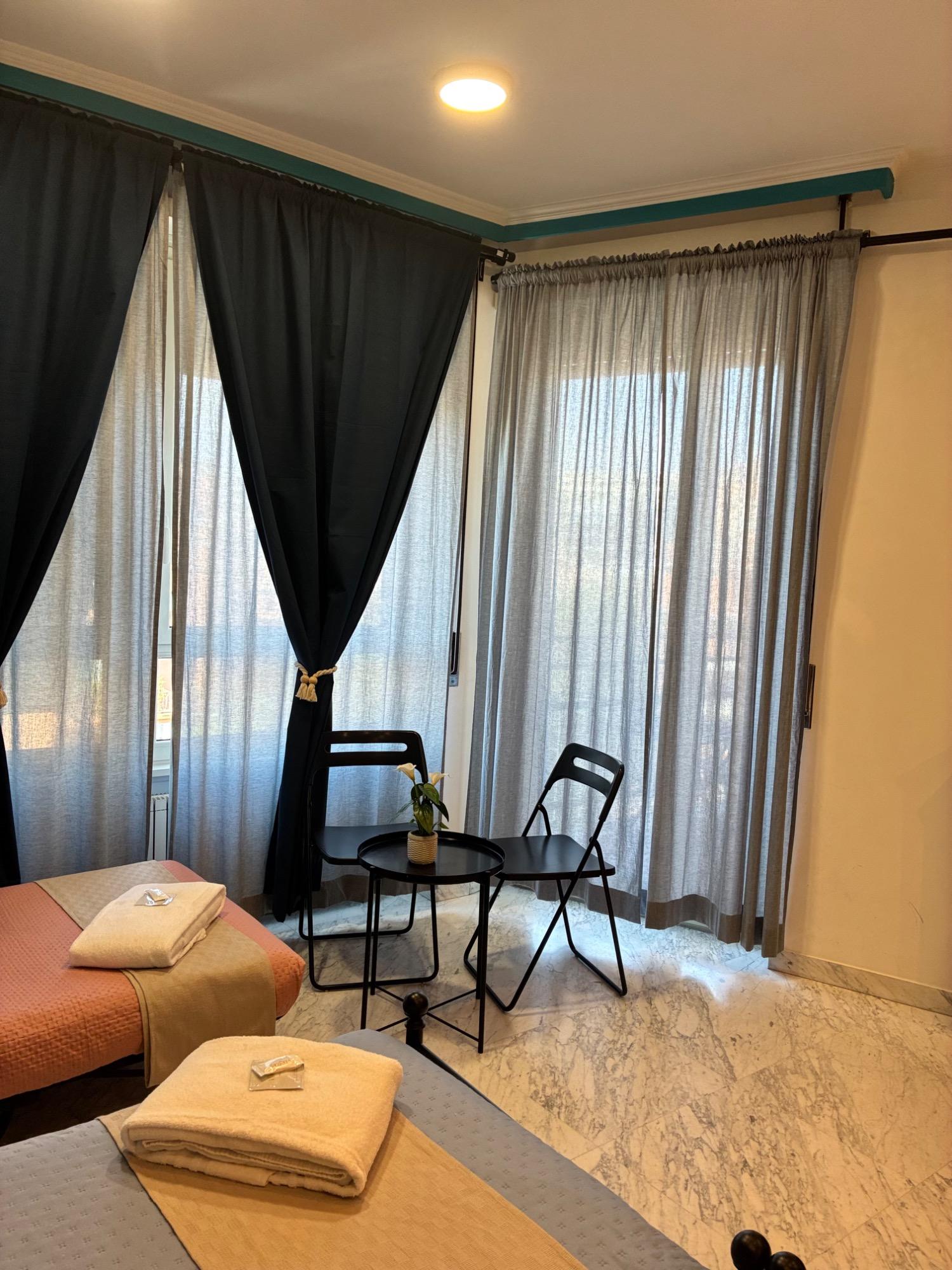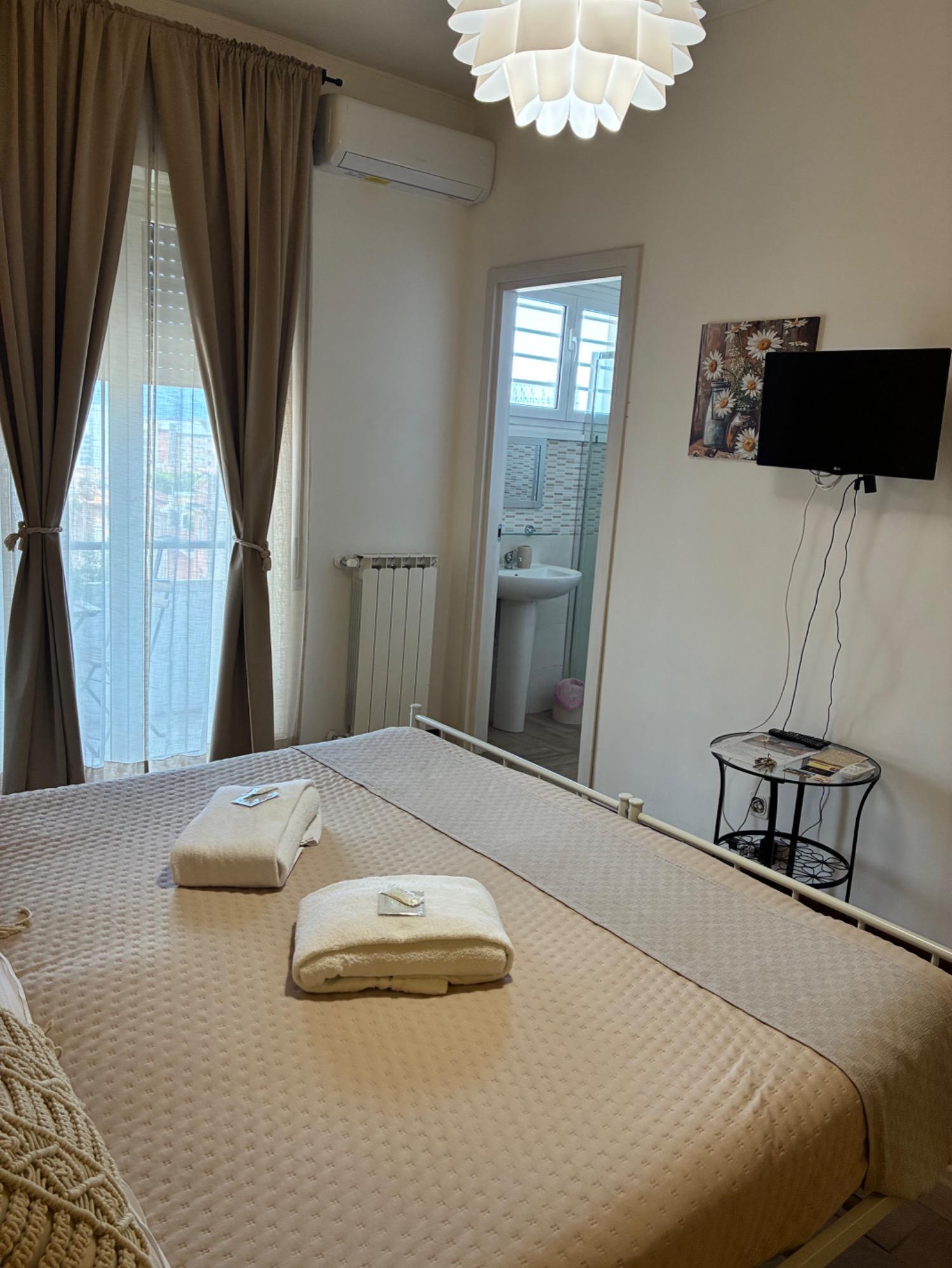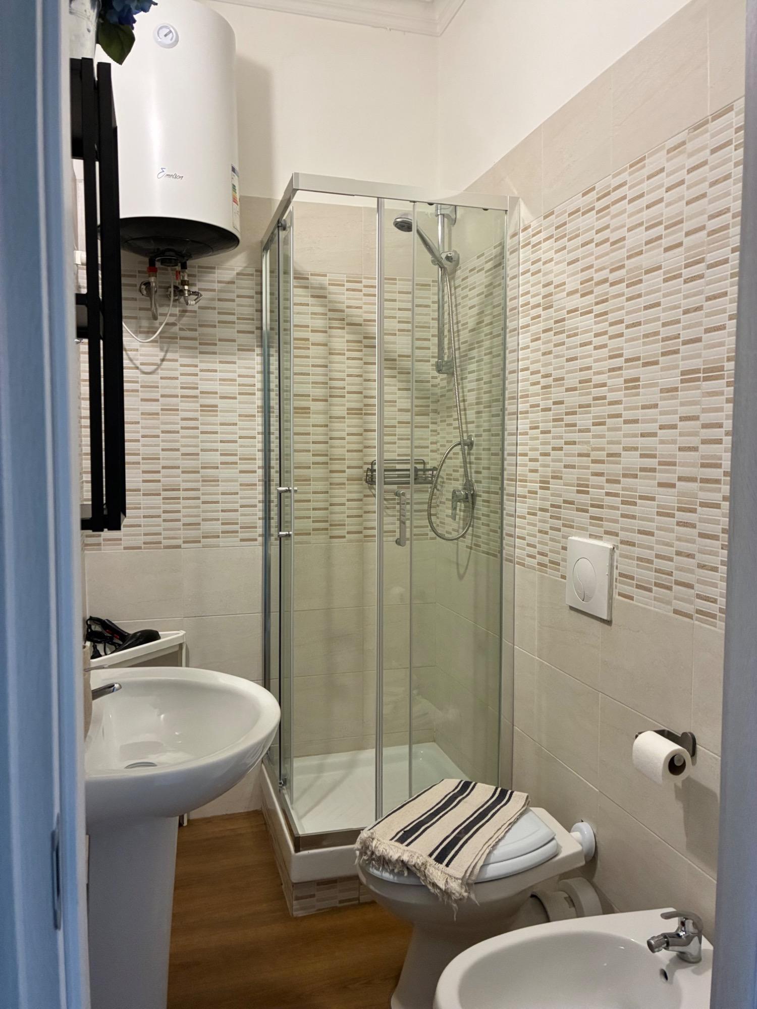 The three spacious and bright rooms, each with a private bathroom (two en-suite and one reserved external), are carefully furnished and equipped with all modern conveniences, including private balconies for moments of relaxation. A shared kitchen is available for guests, enhancing the practicality and enjoyment of the stay.