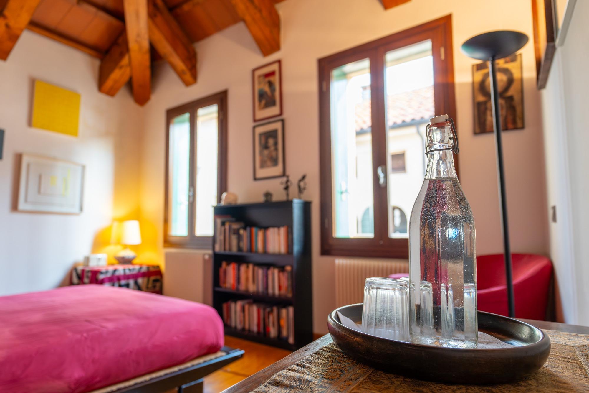 Camera giapponese con letto matrimoniale standard occidentale e bagno privato con vasca e doccia si affaccia sulle viuzze di Bassano. Ampi spazi e anticamera permette agli ospiti intimità e spensieratezza.