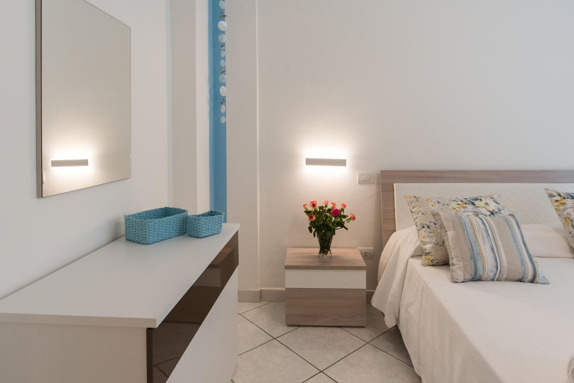 L’appartamento dispone di due camere da letto, un soggiorno accogliente, una cucina funzionale e un bagno. Gli ambienti sono curati, puliti e progettati per offrire comfort e praticità, creando uno spazio ideale sia per famiglie sia per piccoli gruppi di amici. Ogni dettaglio contribuisce a rendere il soggiorno sereno e rilassante, con il mare sempre protagonista.