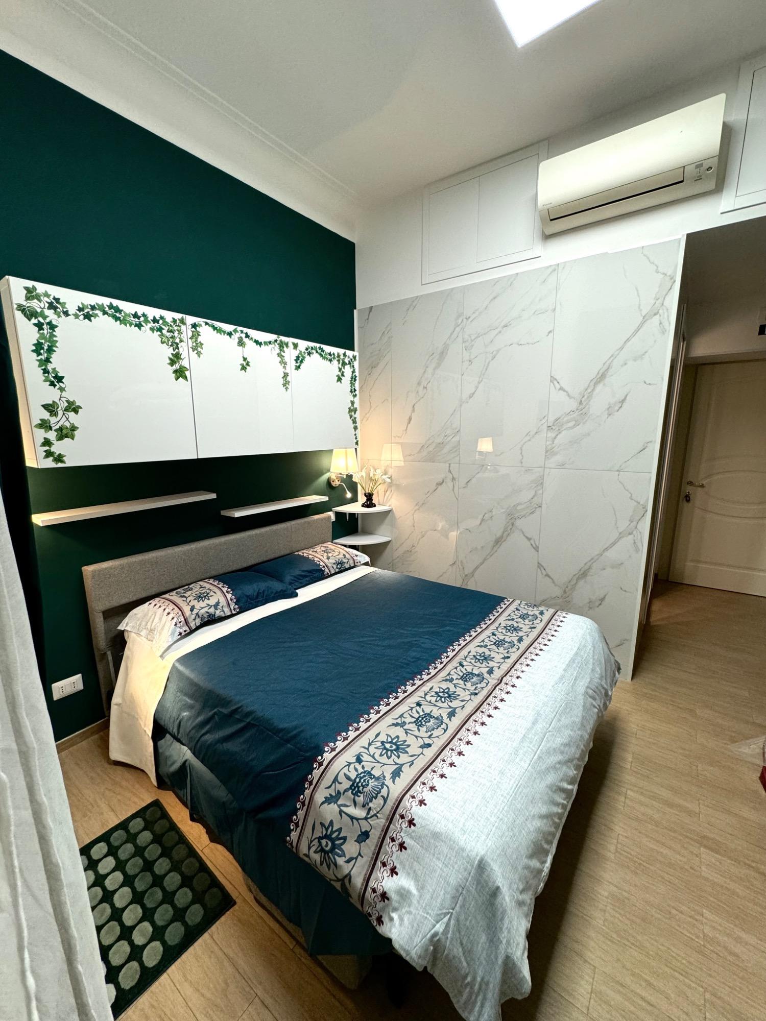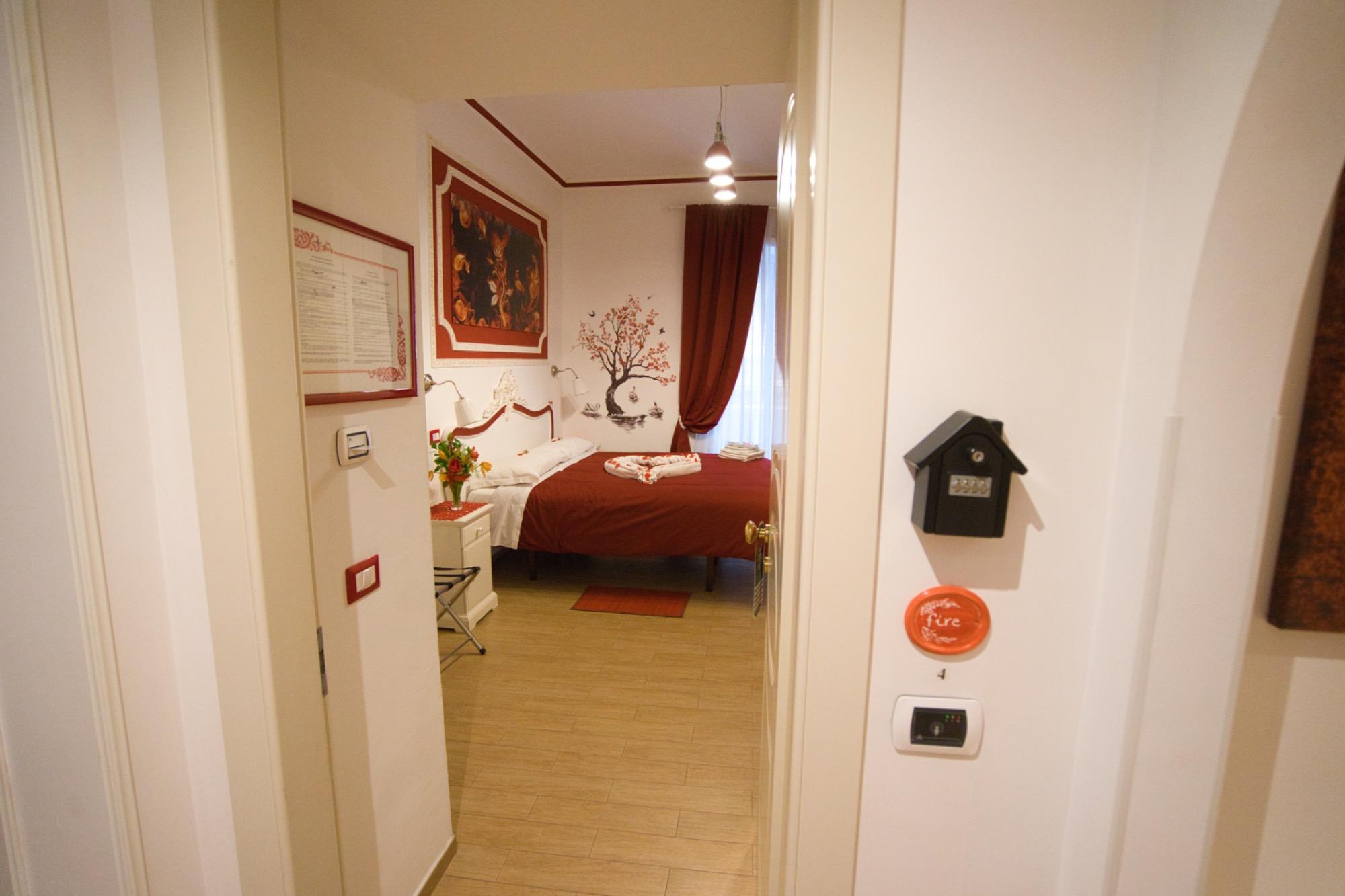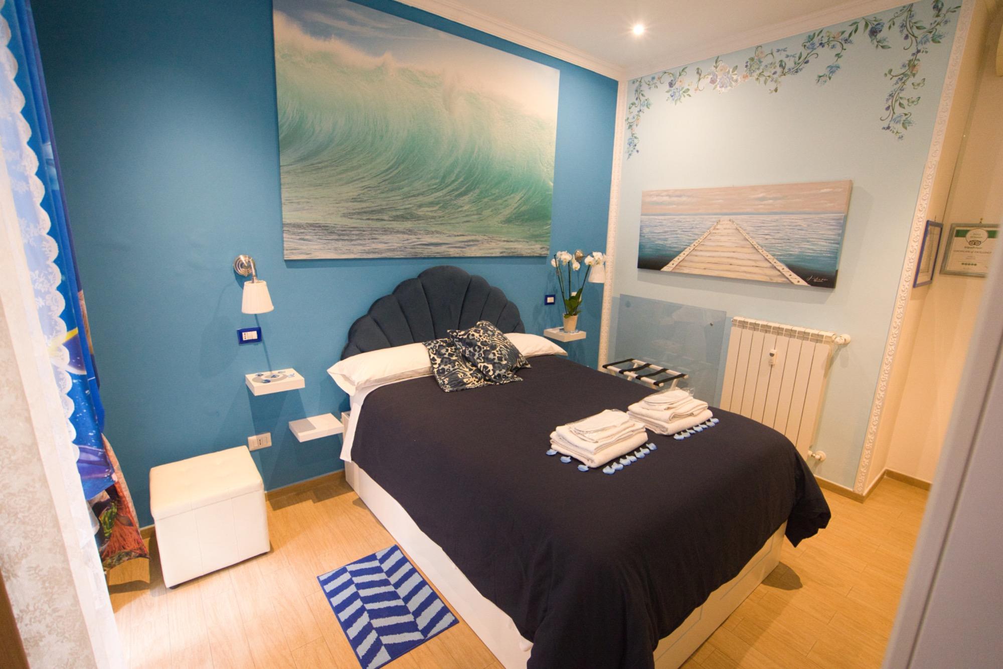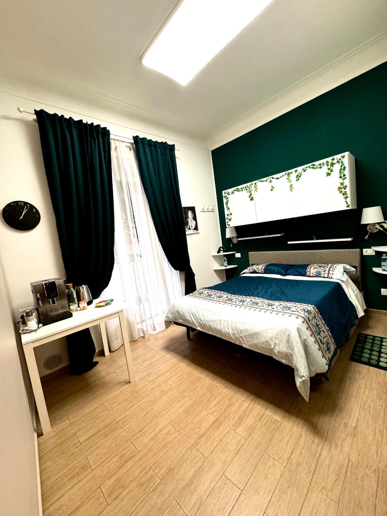 Ampia e confortevole camera matrimoniale con finestre insonorizzate, condizionatore Daikin, riscaldamento condominiale, porta con apertura con tessera magnetica,cassaforte, servizio the e set di cortesia.