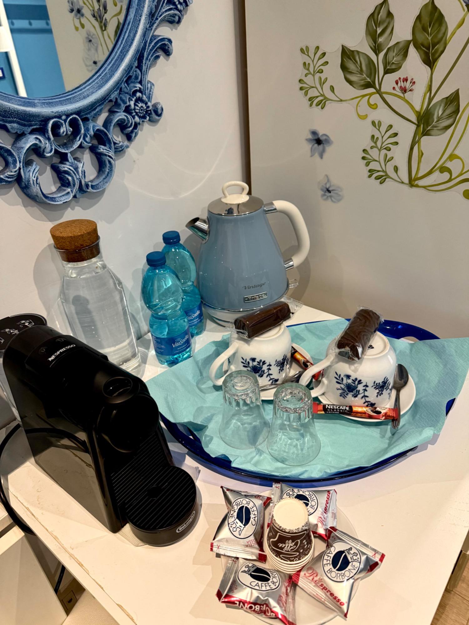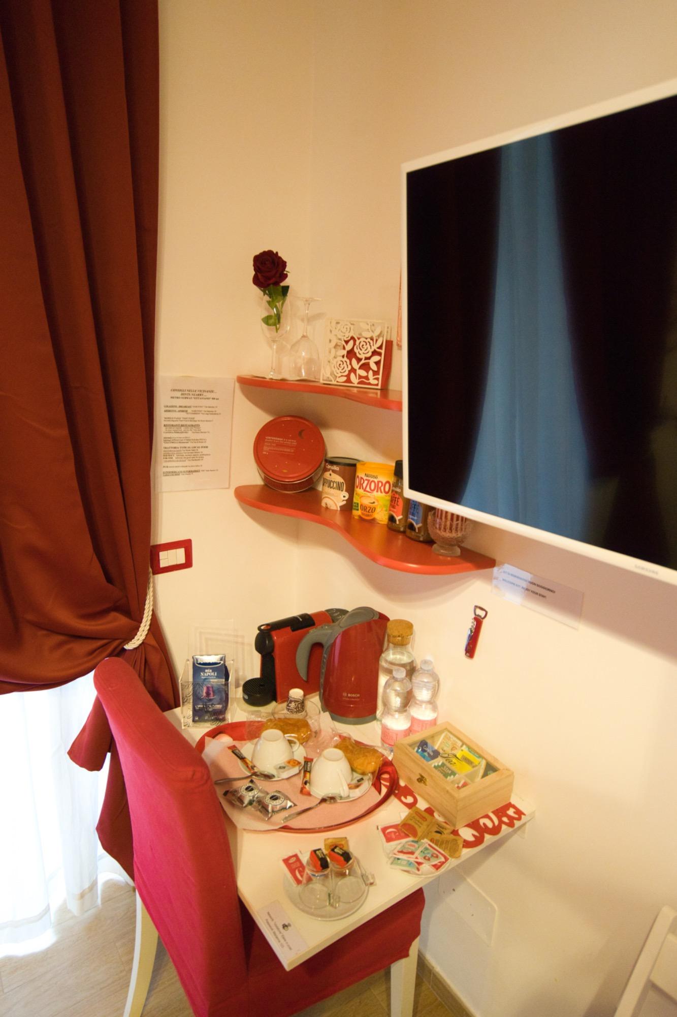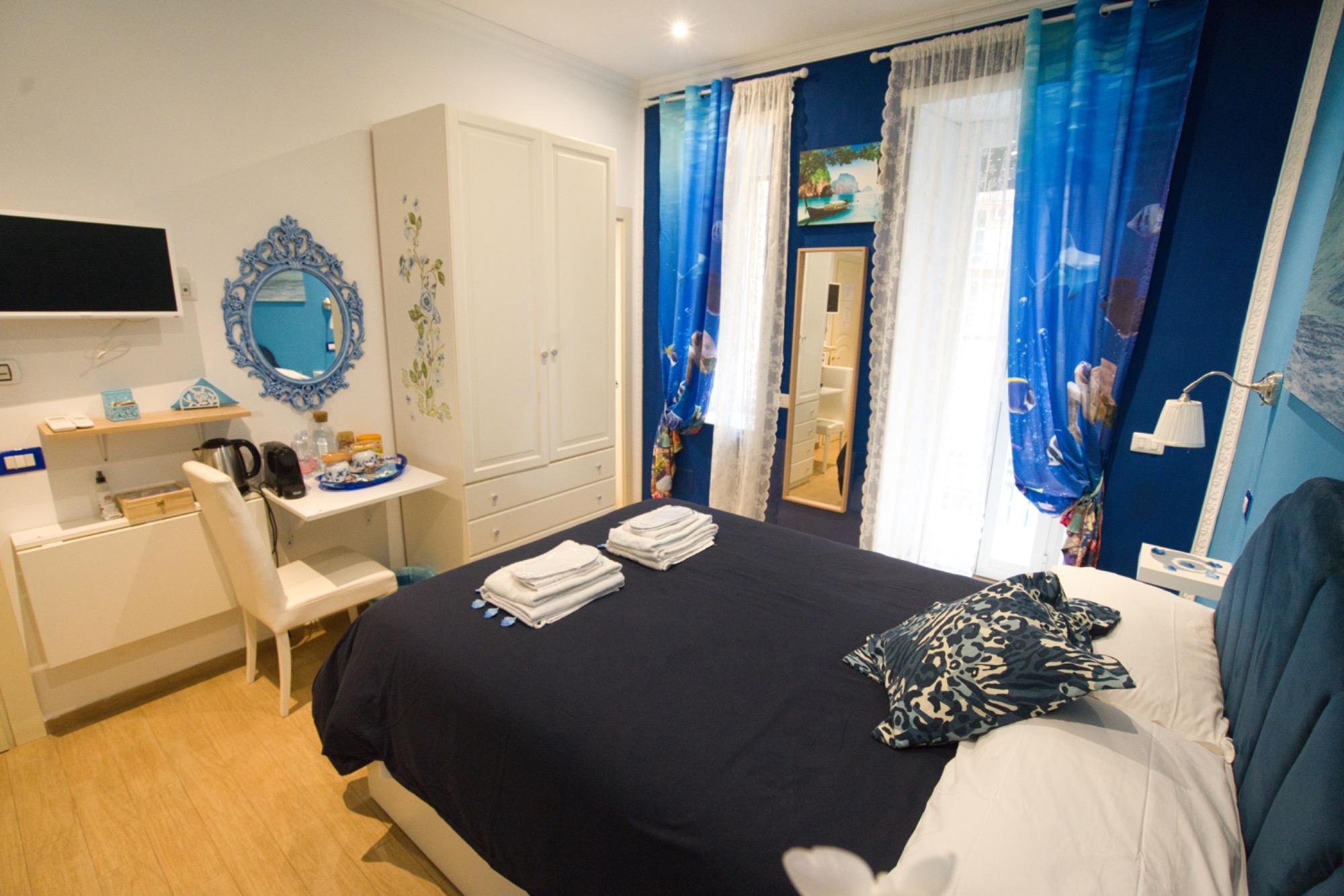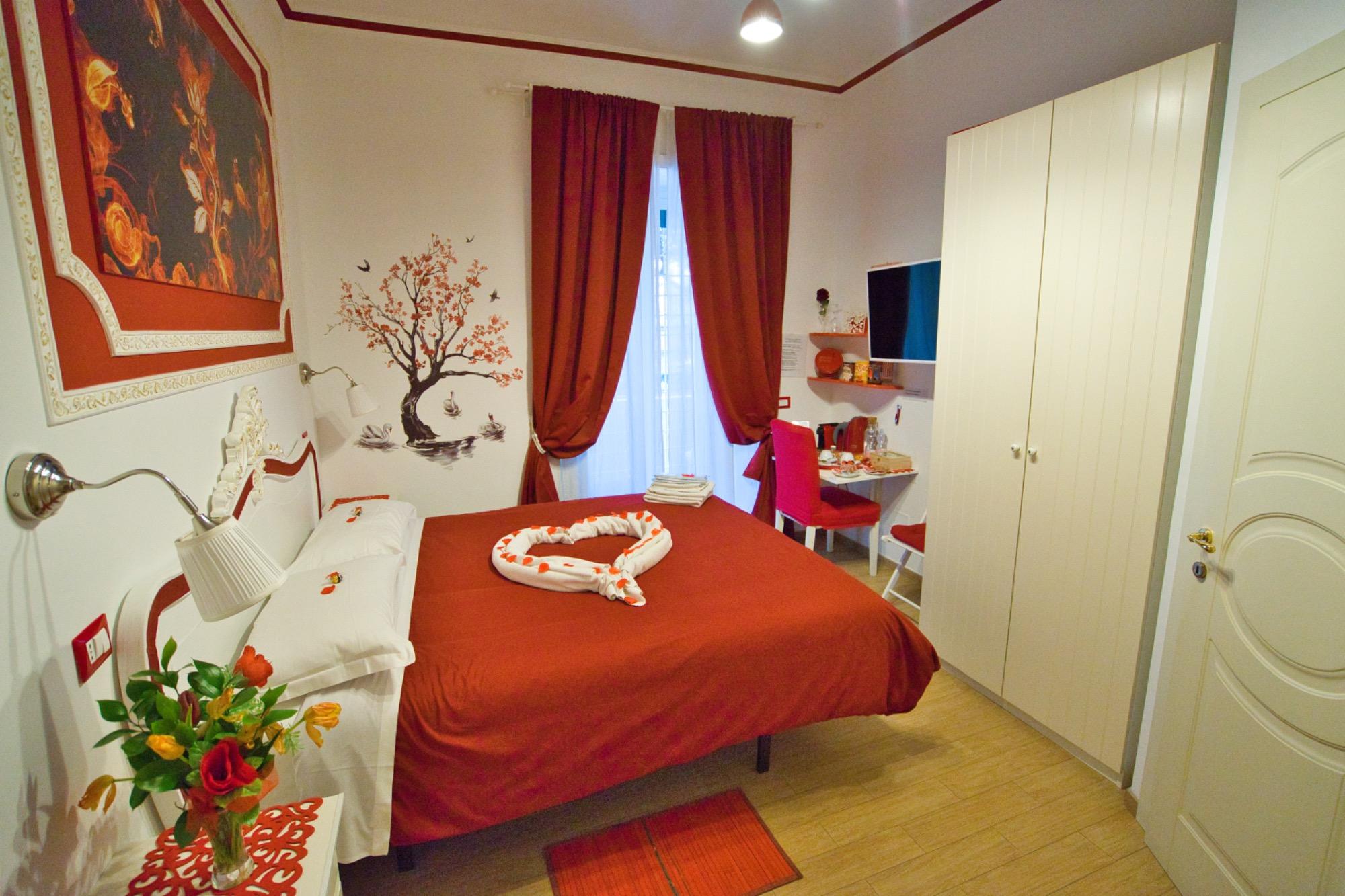 Ampia e confortevole camera matrimoniale con finestre insonorizzate, condizionatore Daikin, riscaldamento condominiale, porta con apertura con tessera magnetica,cassaforte, servizio the e set di cortesia.