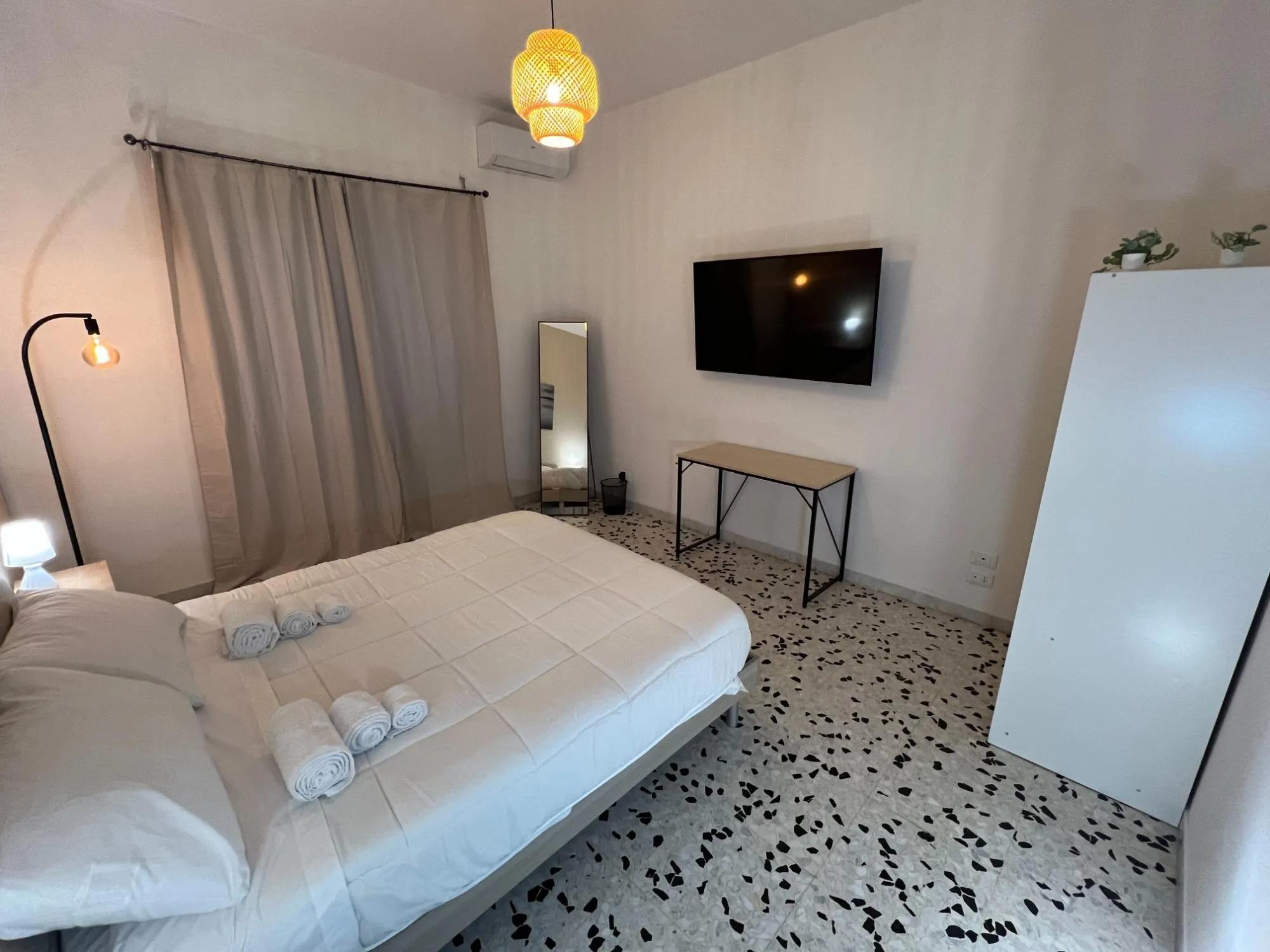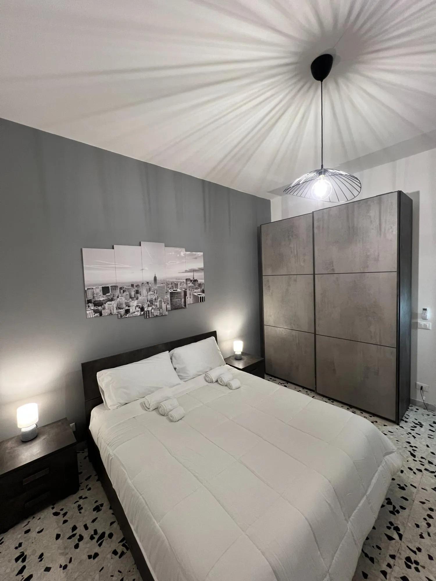 L'appartement comprend deux chambres doubles, chacune équipée d'un espace de travail, d'une Smart TV, de la climatisation, du Wi-Fi et d'un grand placard. Les draps et les serviettes sont fournis pour assurer un maximum de confort. La cuisine, entièrement équipée, comprend un réfrigérateur, des plaques de cuisson, un four, une machine à café, une cafetière italienne, une bouilloire et de la vaisselle, offrant tout le nécessaire pour préparer des repas de manière autonome. La salle de bain est moderne et fonctionnelle, avec douche, bidet, sèche-cheveux et lave-linge à disposition des hôtes.