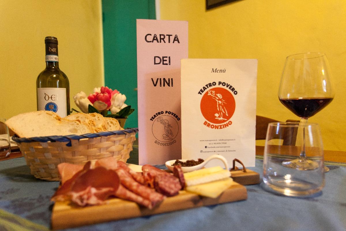 The Teatro Povero di Monticchiello welcomes visitors with two distinctive restaurants: the Taverna di Bronzone and the Bronzino. These two establishments, known for their hospitality, alternate their opening hours: when one is operating, the other remains closed. Both are located in the charming Piazza Nuova, the heart of the village, but on opposite sides. They share a strong passion for local products, quality wines, culinary traditions, and warm hospitality.