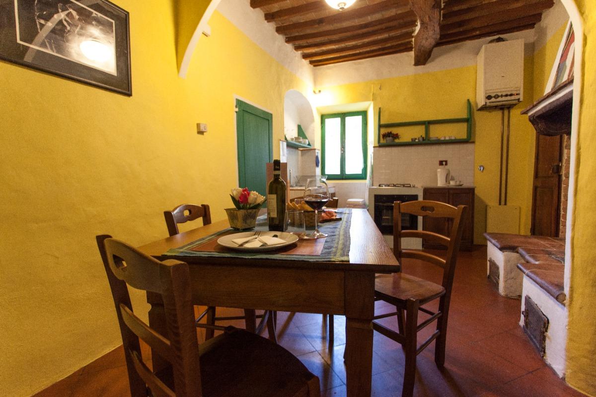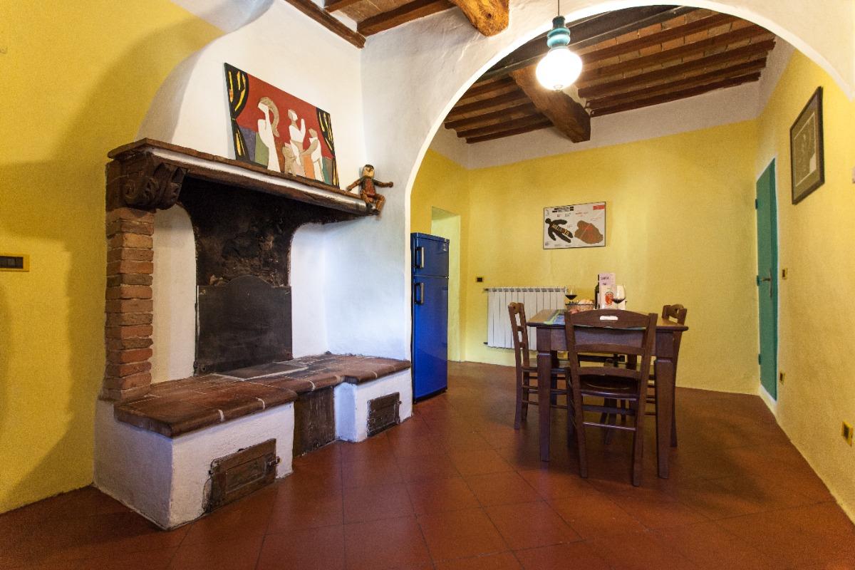The apartment, located on the first floor and accessible via stairs, is suitable for both short and long stays. It features two bedrooms, one with a double bed and the other with a single bed, a bathroom, and a well-equipped kitchen with a living area, a flat-screen TV, and a large wood-burning fireplace. The furnishings are simple and in harmony with the original architecture, reflecting the authentic charm of the property. Wi-Fi is complimentary throughout the house. While there is no breakfast service, guests will find a selection of agreed-upon products upon arrival.