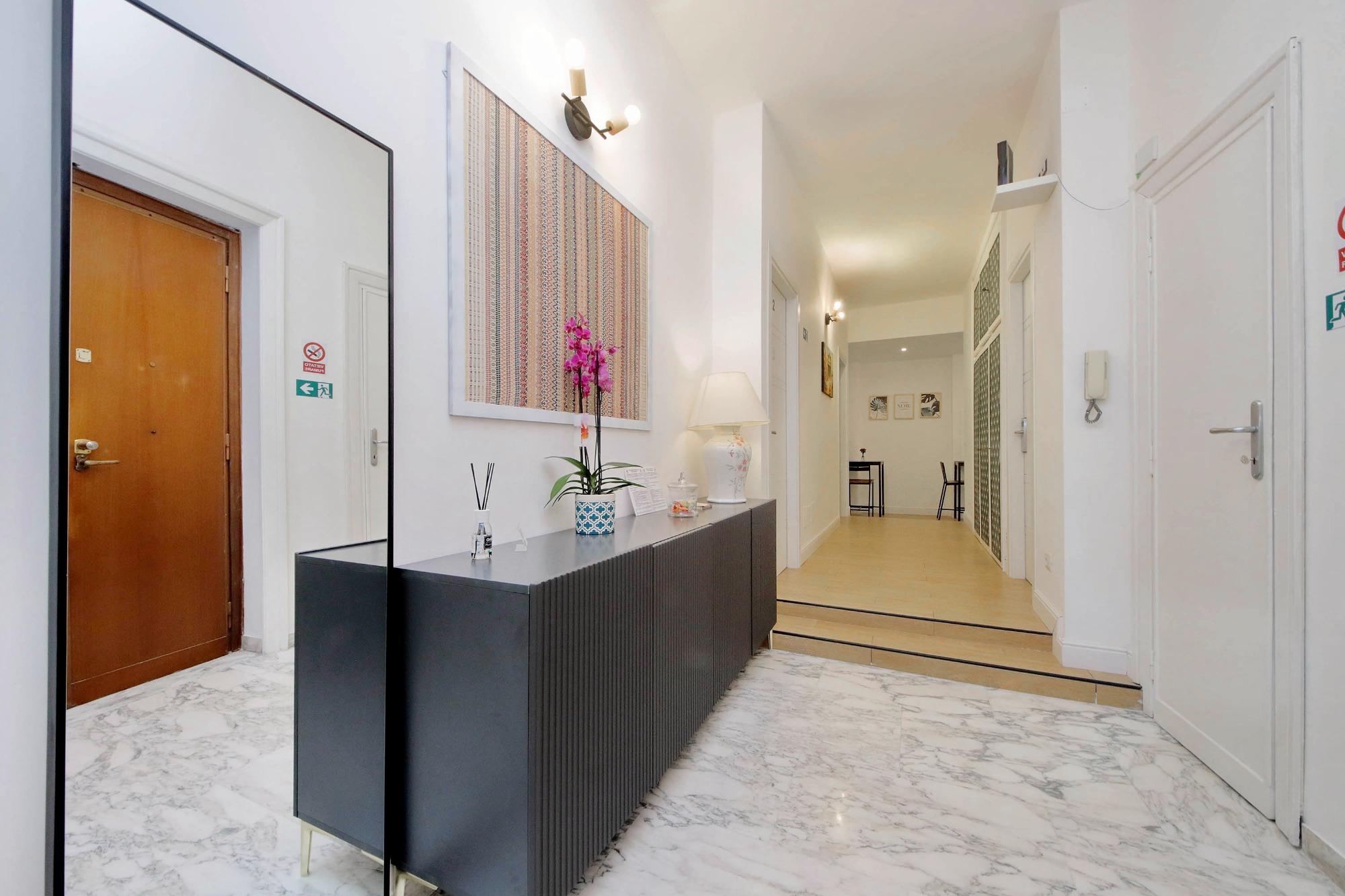 The connection to the historic center is quick and efficient: tram line 2 takes you to Piazza del Popolo in just two minutes, from where you can easily walk to Rome's main attractions. This strategic location combines convenience, elegance, and excellent transport links.