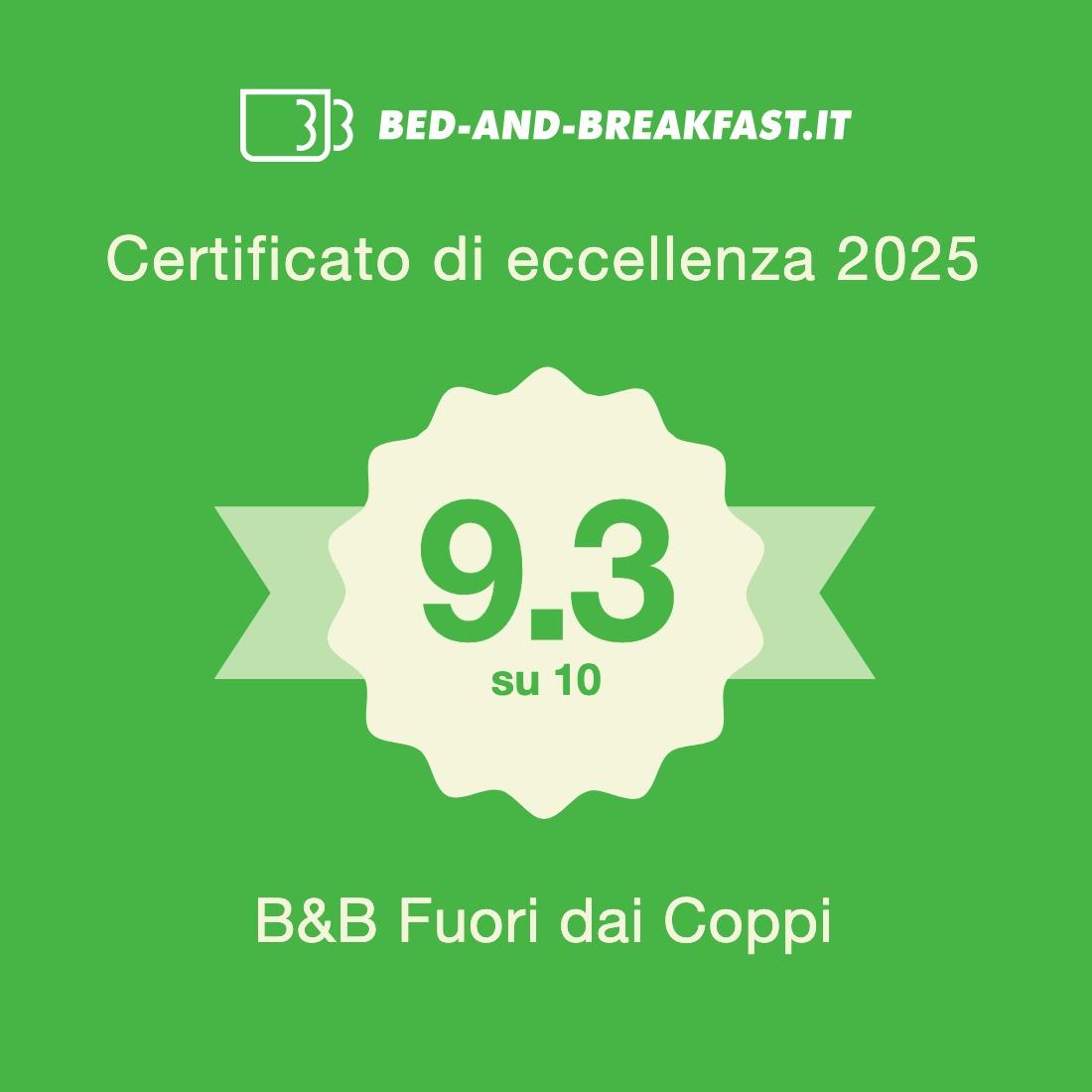 Certificato di eccellenza9.5su 10B&B Fuori dai Coppi Certificato di eccellenza 2025
