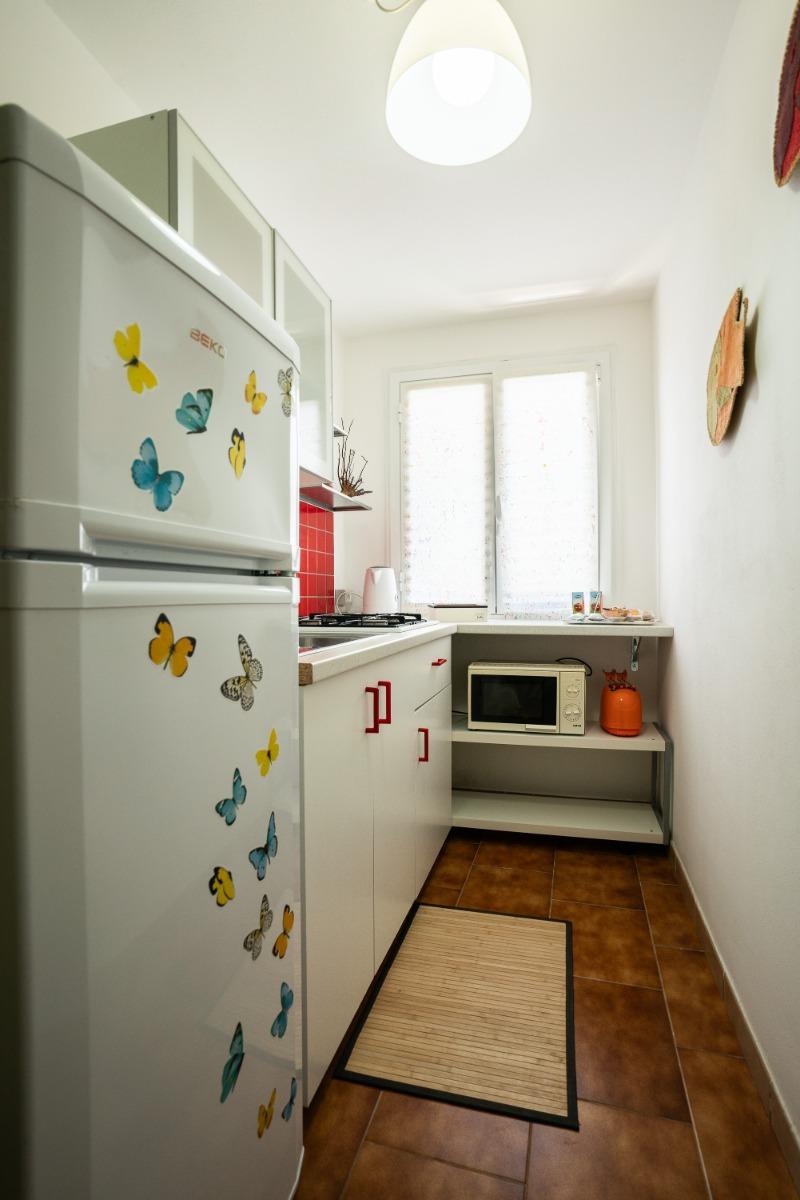 L'appartement est entièrement équipé avec un coin cuisine, un lave-linge, une télévision et le Wi-Fi inclus dans le tarif. La salle de bain privée dispose d'une douche, tandis que la climatisation garantit un confort optimal toute l'année. À l'extérieur, une véranda meublée avec des fauteuils et une table offre un espace idéal pour se relaxer en plein air. De plus, un emplacement pour moto ou vélo est à disposition. Les animaux de compagnie sont les bienvenus.