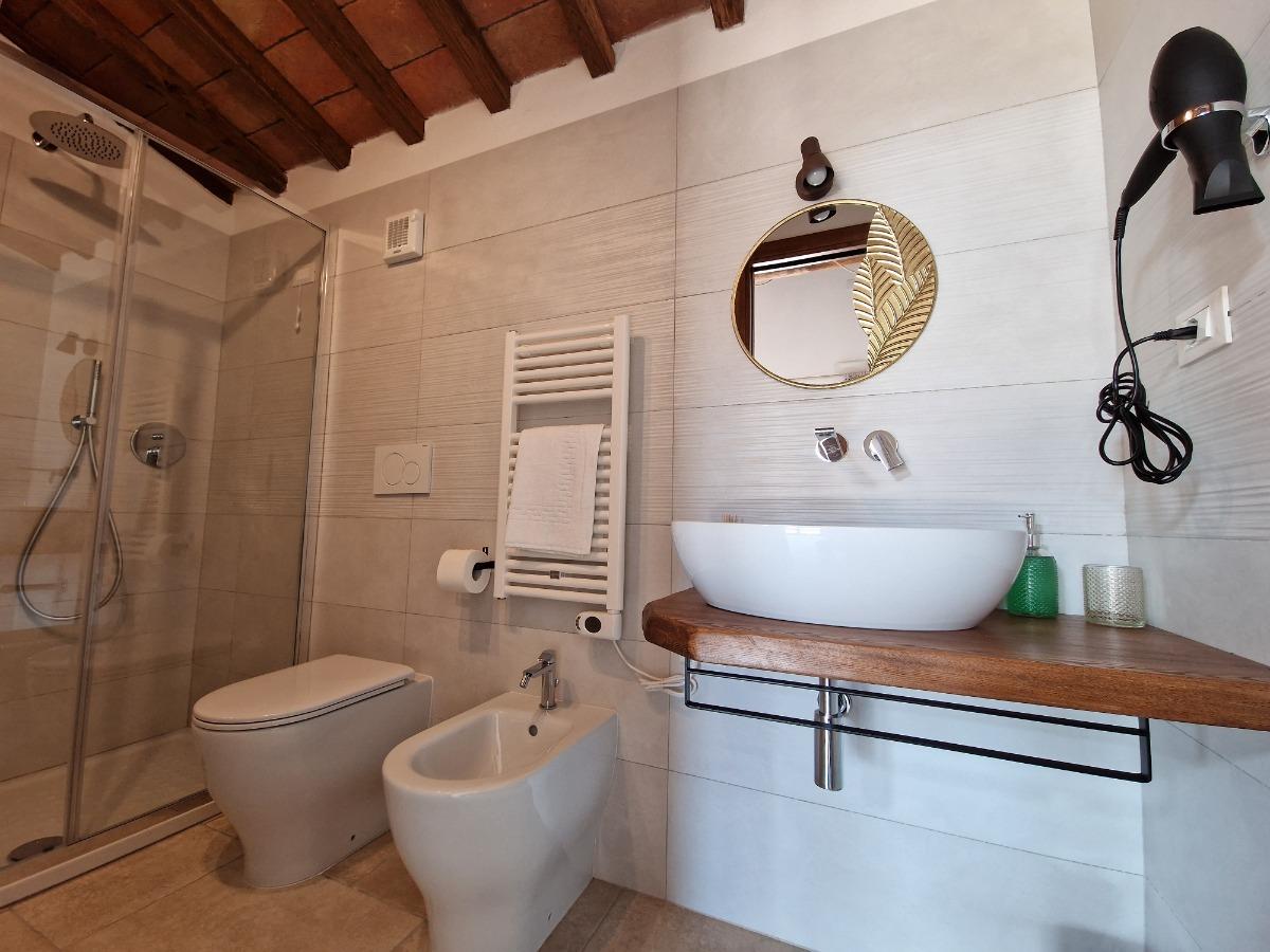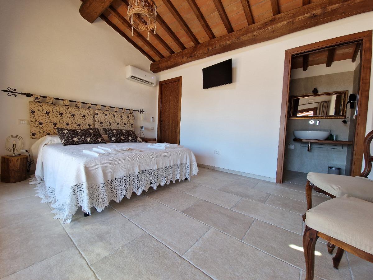 Le camere si trovano al piano terra, con accesso indipendente e una vista panoramica sulla campagna toscana. Ogni camera è dotata di un comodo letto matrimoniale king size e di un bagno con una spaziosa doccia.