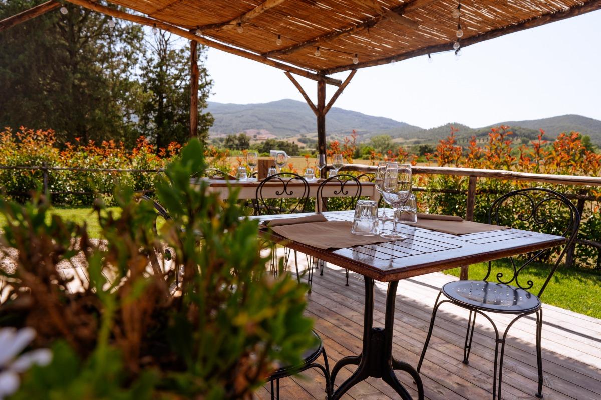 Il Ristorante Agrituristico si compone di due sale, una interna ed una esterna, dove potrete gustare pranzi e cene in compagnia. Inoltre, adiacente al ristorante, troverete una graziosa veranda, ideale per rilassarsi e godersi la vista sul verde della natura.