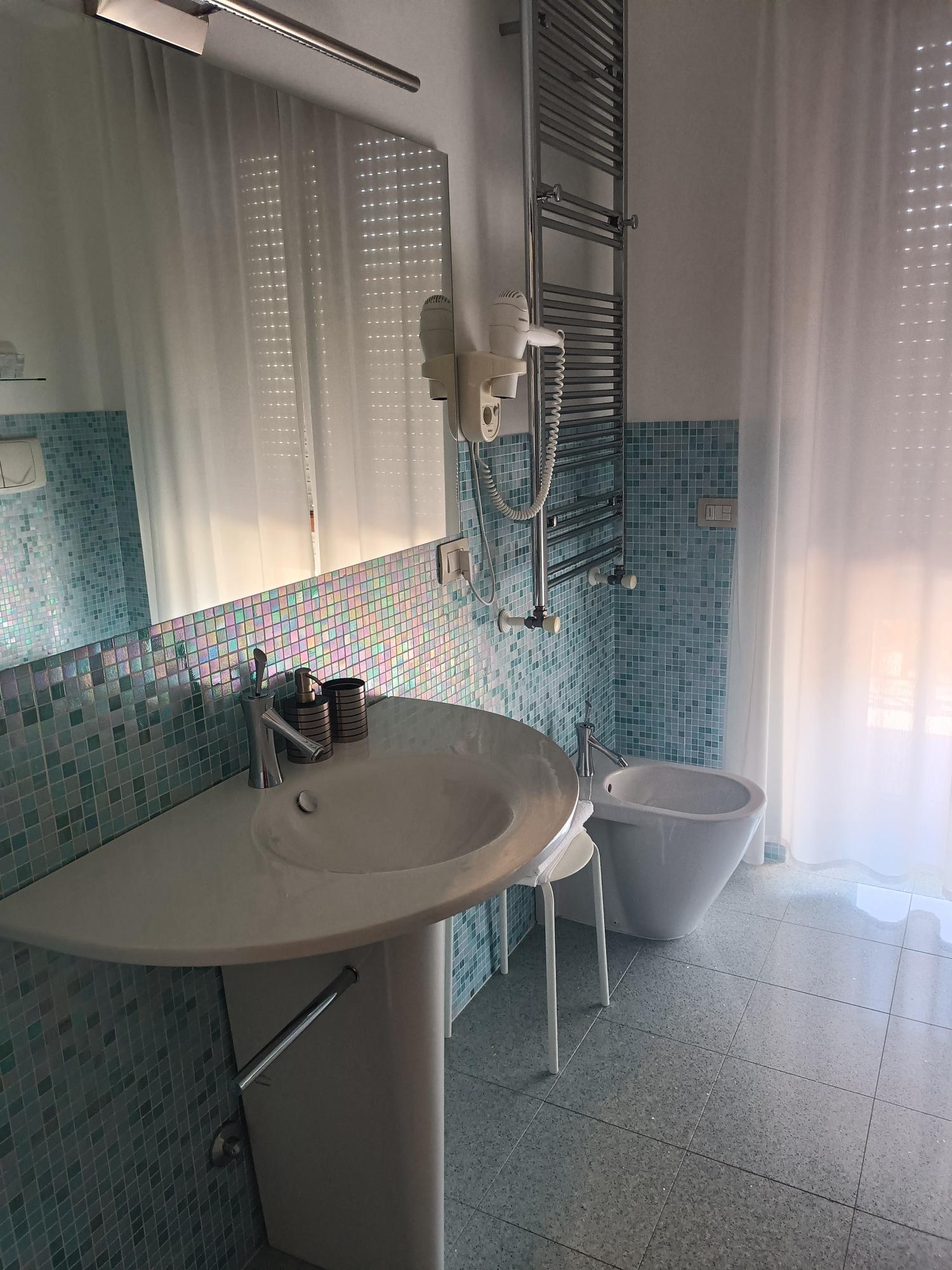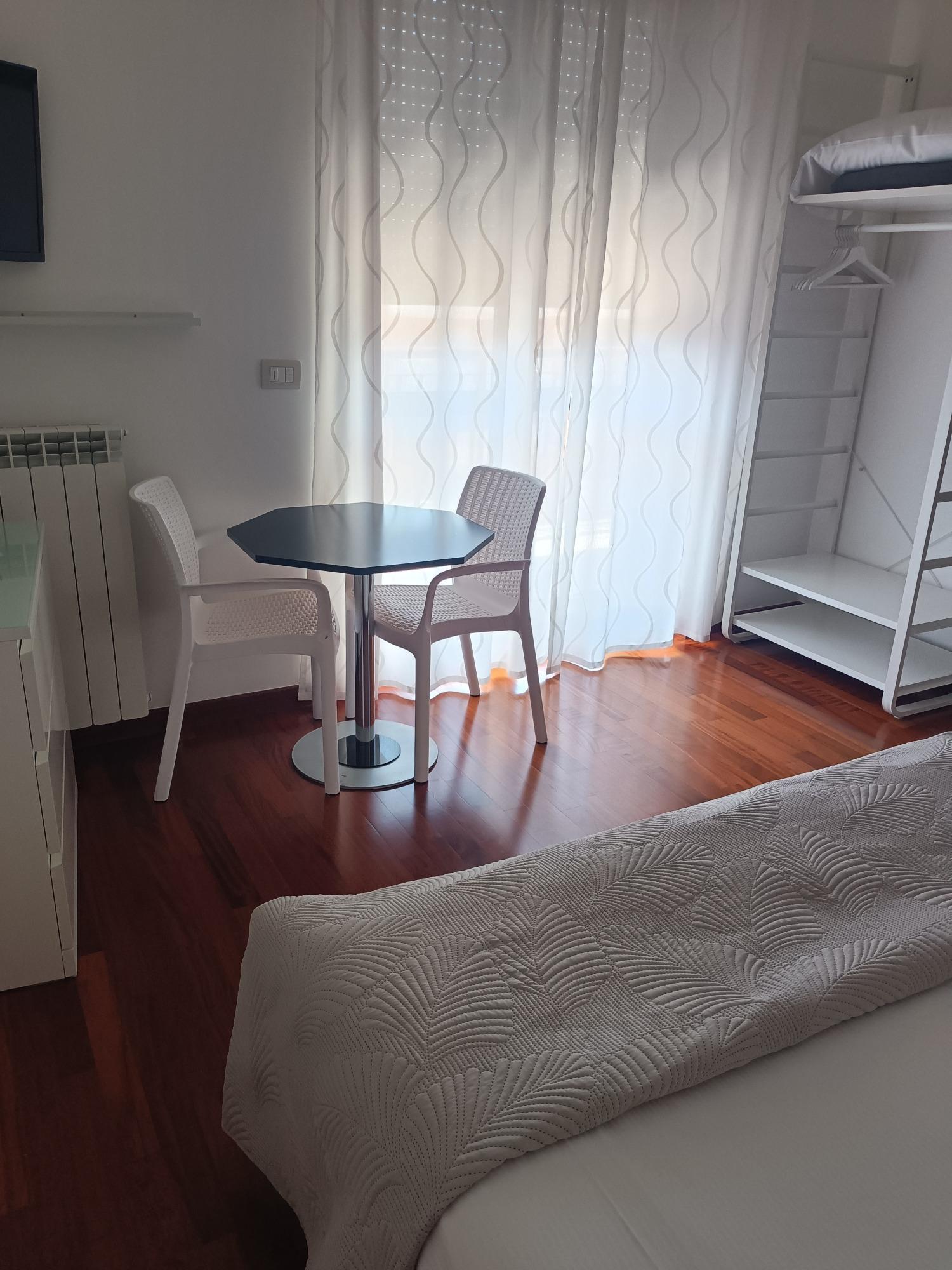 Camera Tripla con Vista Città Superficie: 24 m² 1 letto matrimoniale + 1 letto uso singolo Servizi in camera: Mini frigo Aria condizionata indipendente WiFi gratuito Balcone e terrazza con vista città Scrivania, riscaldamento, parquet, biancheria da letto Presa elettrica vicino al letto, stand appendiabiti Bagno in camera con: Doccia, WC, bidet, asciugamani, asciugacapelli. Carta igienica, prodotti da bagno. COLAZIONE INCLUSA PRESSO BAR CONVENZIONATO