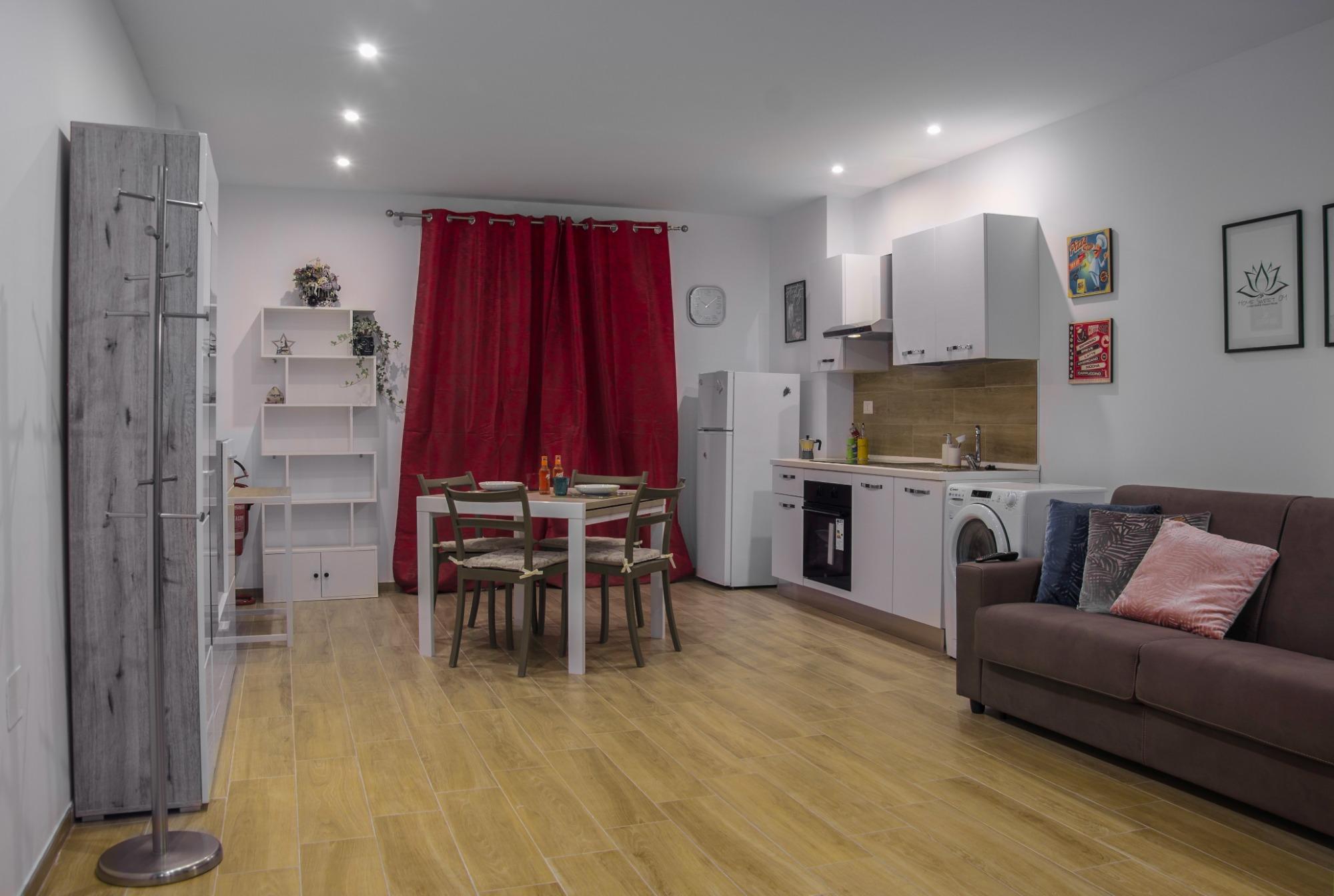 The accommodation is air-conditioned and inviting, with a bedroom, a well-organized living room, and a kitchen equipped with utensils, a refrigerator, an electric kettle, and everything needed to prepare meals independently. The bathroom includes a shower and bidet, and to enhance your stay, towels and bed linens are provided.