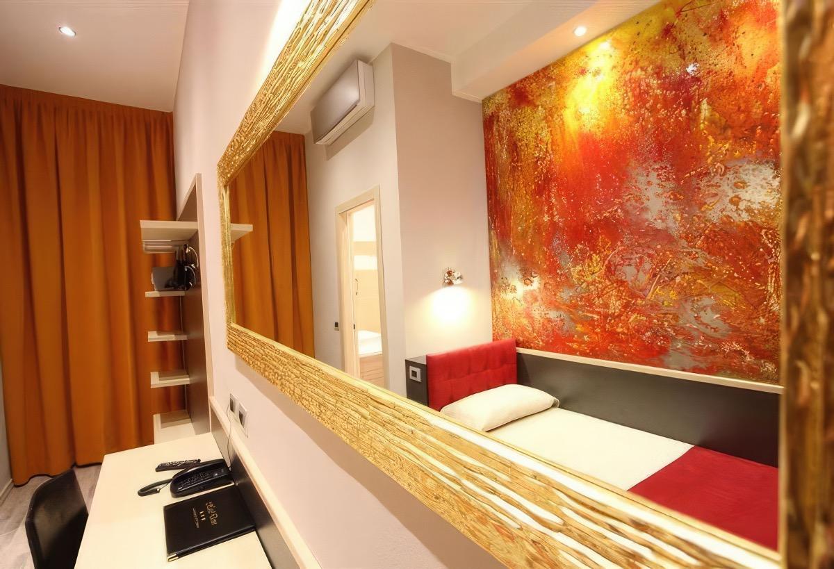 The Hotel Demó of Milan is a modern and cosy facility, embellished with the works of art of its owner, Enrico Nicodemo (also known as Demó), on display in the reception area.