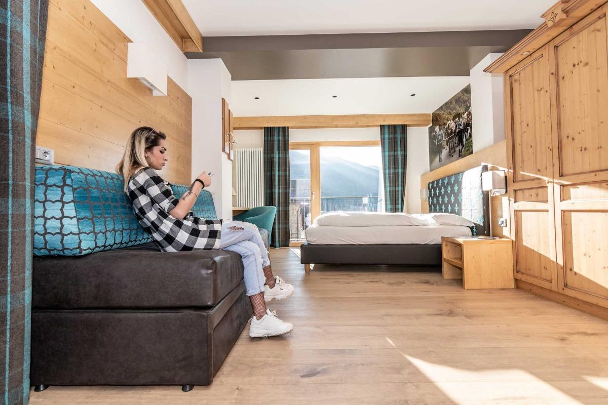 L'Hotel Eccher si trova nel pittoresco villaggio di Mezzana, immerso nella suggestiva Val di Sole ai piedi del maestoso Parco Nazionale dello Stelvio. Circondato da maestose montagne e affascinanti borghi rurali, il nostro hotel è la base ideale per esplorare la zona. A pochi passi dalle principali attrazioni estive e invernali della Val di Sole, nonché dalla comodità degli impianti sciistici di Marilleva e Folgarida, collegati direttamente alla rinomata skiarea di Campiglio Dolomiti di Brenta. Inoltre, siamo situati a breve distanza dalla fermata del treno, rendendo gli spostamenti ancora più facili e convenienti. L'Hotel Eccher, un'accogliente struttura a 3 stelle superior, è il luogo preferito dalle famiglie desiderose di trascorrere momenti indimenticabili a contatto con la natura. I ciclisti troveranno panorami mozzafiato e strade avventurose, mentre gli amanti dello sci potranno godere delle piste invernali e gli appassionati di mountain bike potranno esplorare i sentieri durante l'estate. Inoltre, gli ospiti potranno gustare i deliziosi piatti tipici trentini e scoprire tutto ciò che la Val di Sole ha da offrire. Le nostre camere sono tutte arredate in stile trentino con un tocco moderno, utilizzando materiali naturali come il legno di larice e abete. Ogni camera dispone di un bagno privato e la maggior parte offre un balcone con una magnifica vista sulle montagne circostanti. Alcune camere si trovano nel suggestivo attico con travi a vista. Abbiamo ristrutturato la maggior parte delle camere per garantire un soggiorno ancora più piacevole e un riposo confortevole, con particolare attenzione all'ecocompatibilità. La maggior parte delle camere è dotata di pavimenti in parquet antiallergici. Ogni stanza porta il nome di luoghi meravigliosi da visitare nella Val di Sole e di antiche tradizioni che fanno ancora parte del nostro quotidiano. Inoltre, ogni camera è decorata con una grande fotografia che rappresenta il nome della stanza, ispirando i nostri ospiti durante il loro soggiorno all'Hotel Eccher. Due delle nostre Junior Suite offrono spazi separati con porte scorrevoli o a battente per garantire privacy e indipendenza alle famiglie con bambini. Da qualsiasi camera potrete ammirare la splendida vista circostante grazie ai balconi che si affacciano sulla Val di Sole... per iniziare la giornata nel migliore dei modi!