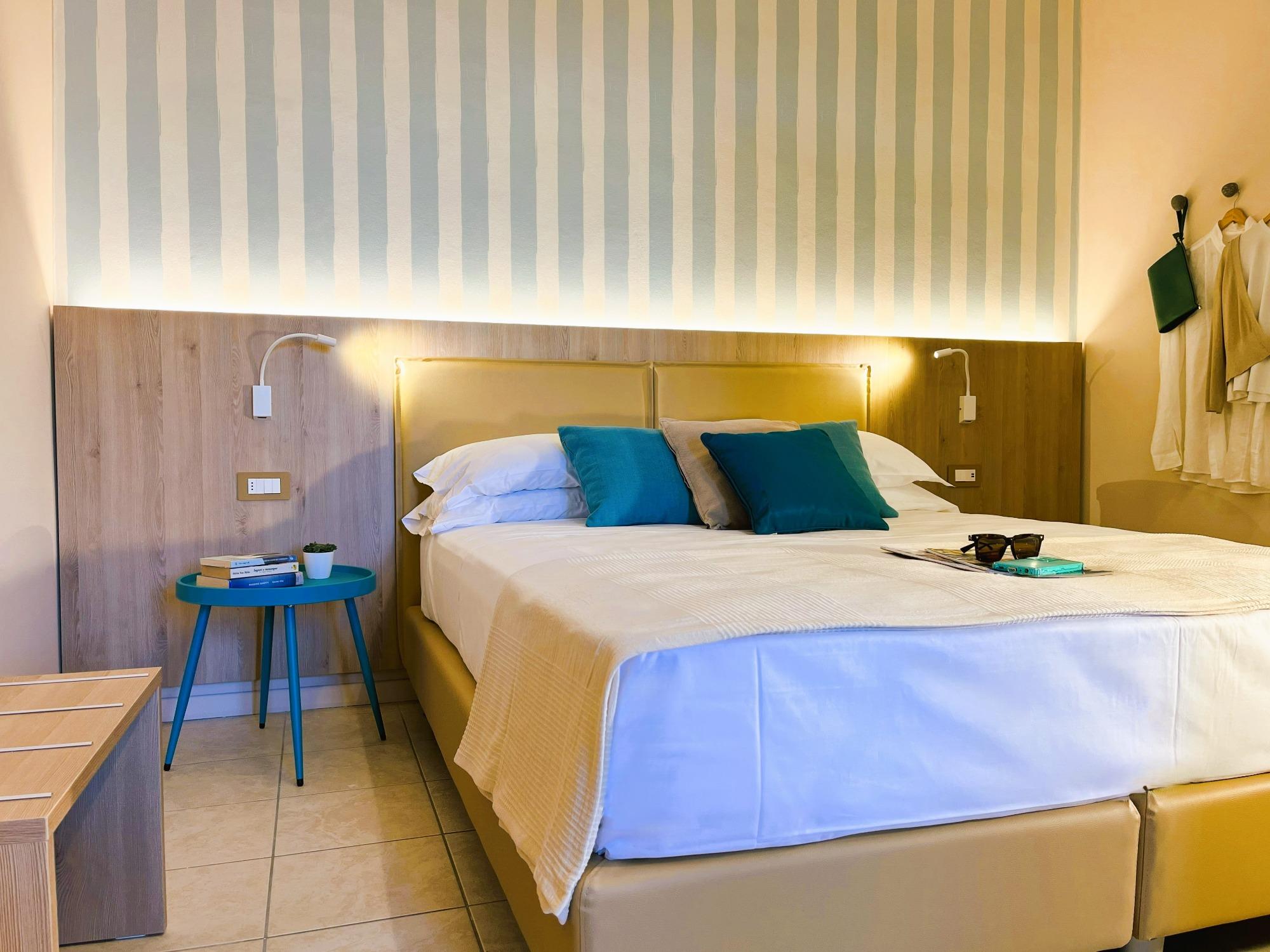 Die 30 Hotelzimmer sind hell und bieten jeglichen Komfort: eigenes Badezimmer mit Dusche und Haartrockner, TV, Klimaanlage, Safe, WLAN und ab 2023 auch einen Minikühlschrank, um Getränke und Snacks zu jeder Tageszeit zu genießen.