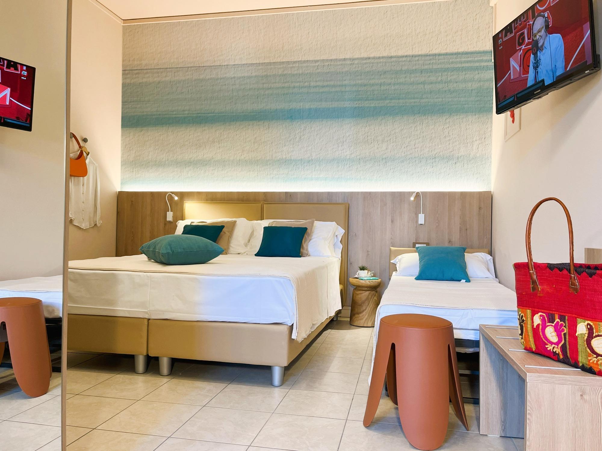 Der Strand ist nur 200 Meter vom Hotel entfernt und wir haben eine Vereinbarung mit dem Bagni Solindo Badeort, der feinsten Sand und alle notwendigen Annehmlichkeiten wie Sonnenschirme, Liegen, Service, Duschen, eine Bar und einen großen Spielbereich für Kinder bietet. Darüber hinaus gibt es Beach-Tennis-, Beachvolleyball-, Boccia-, Tischtennis- und Trampolinplätze für aktivere Momente!
