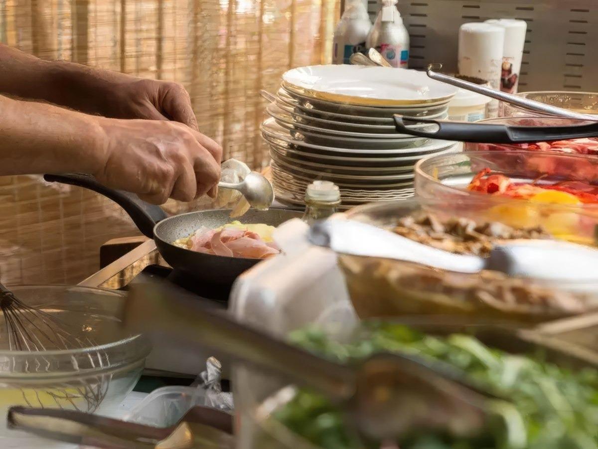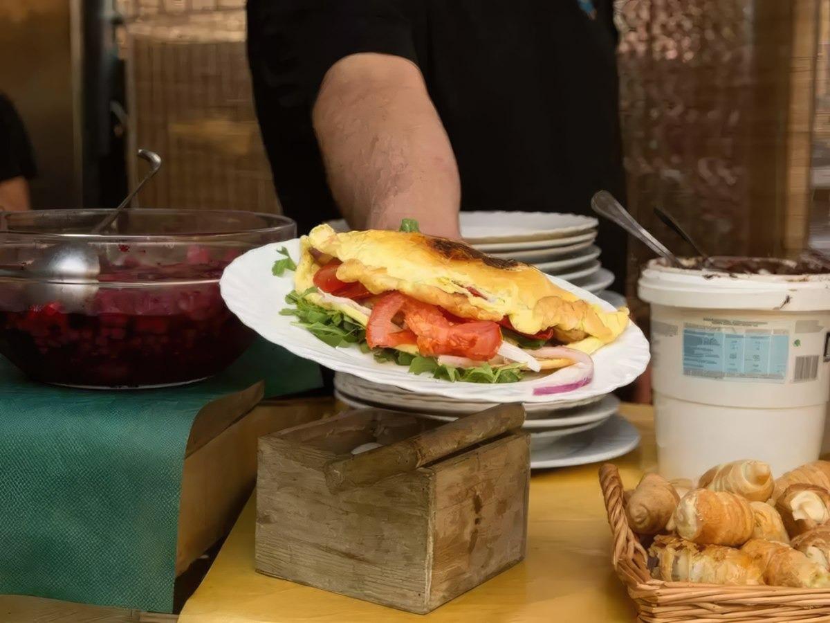 Every morning, Eraldo will delight you with his delicious selection of waffles (with Nutella, honey, chocolate, or jam), fantastic sweet pancakes (with Nutella, chocolate, and cream) and savory ones (with tomato, mozzarella, mushrooms, artichokes, vegetables), and incredible savory omelettes.